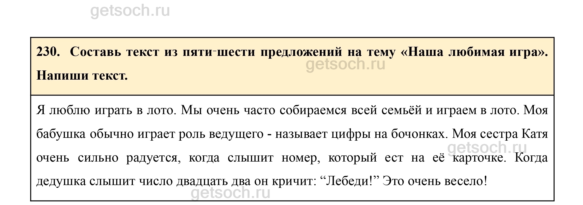 230. Составь текст из пяти‑шести предложений на тему «Наша любимая игра». Напиши текст.