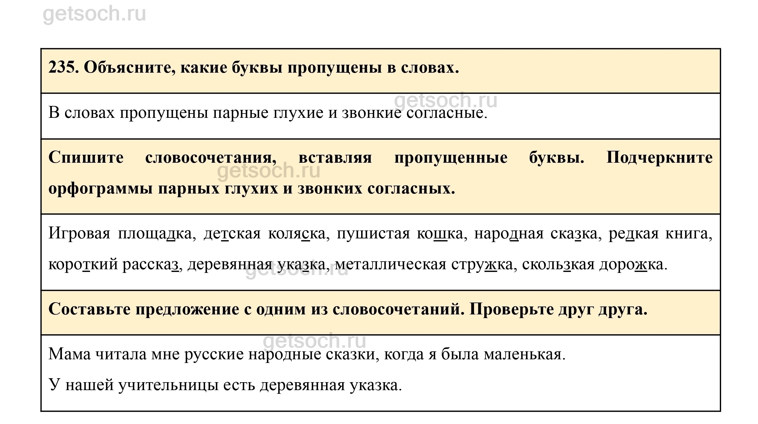 Рассмотрим ответы на Упражнение 235 из учебника по русскому языку для 3 класса Рамзаевой
