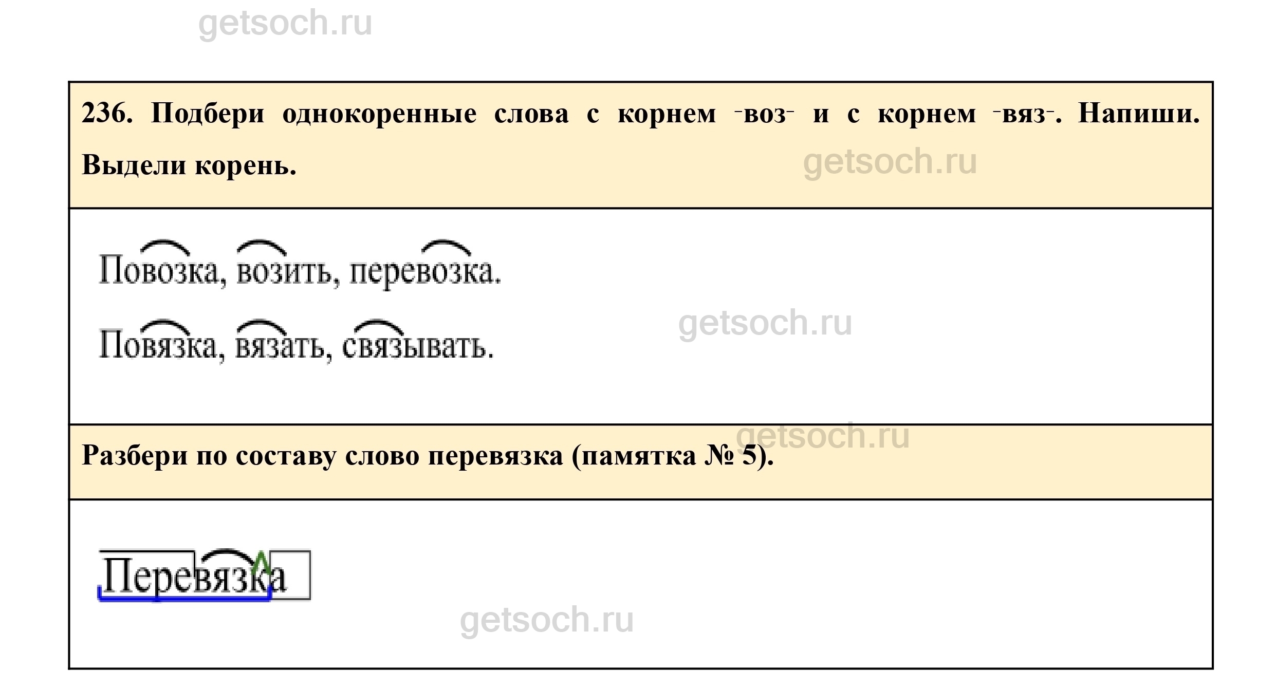 236. Подбери однокоренные слова с корнем ‑воз‑ и с корнем ‑вяз‑. Напиши. Выдели корень.