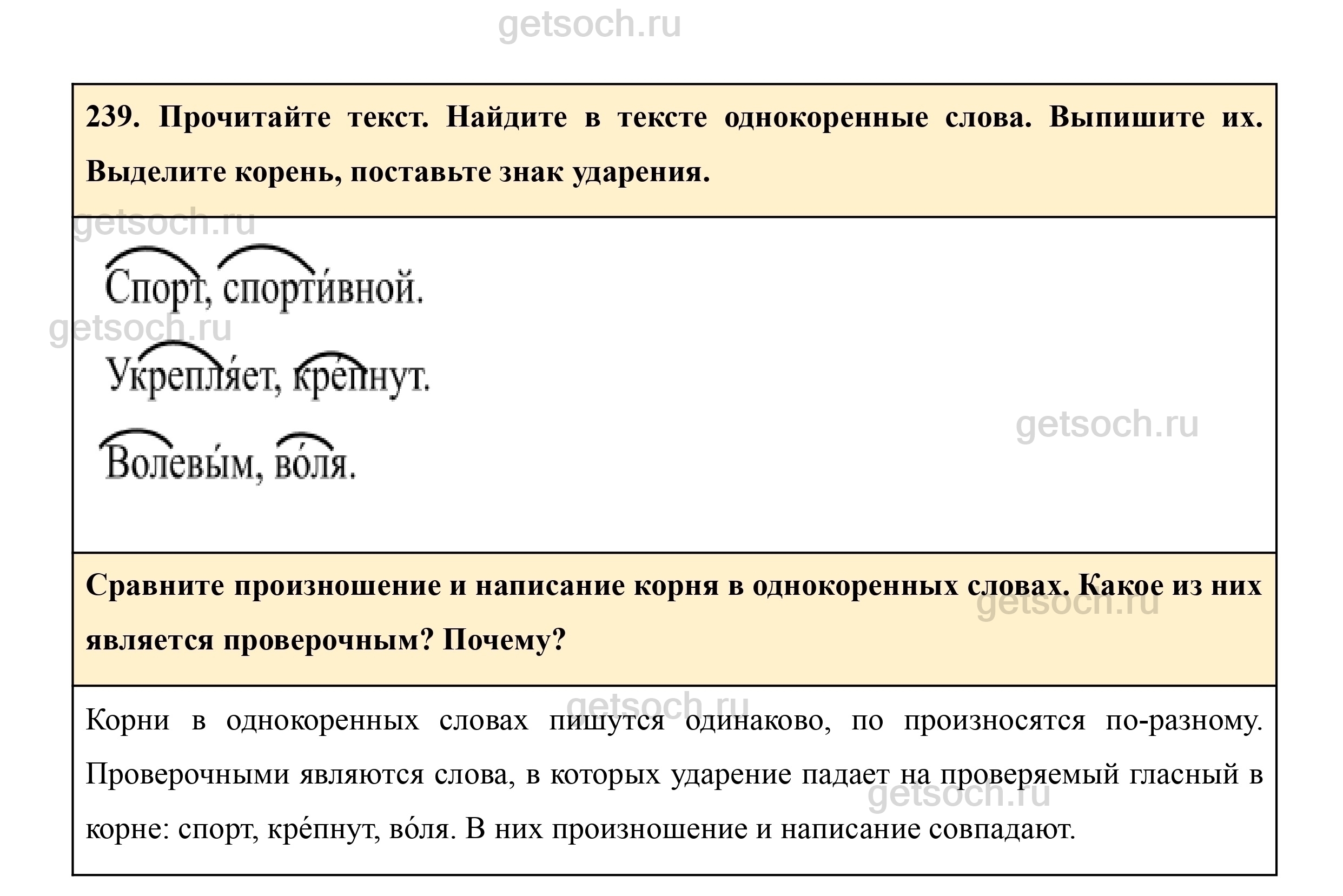 239. Прочитайте текст. Найдите в тексте однокоренные слова. Выпишите их. Выделите корень, поставьте знак ударения.