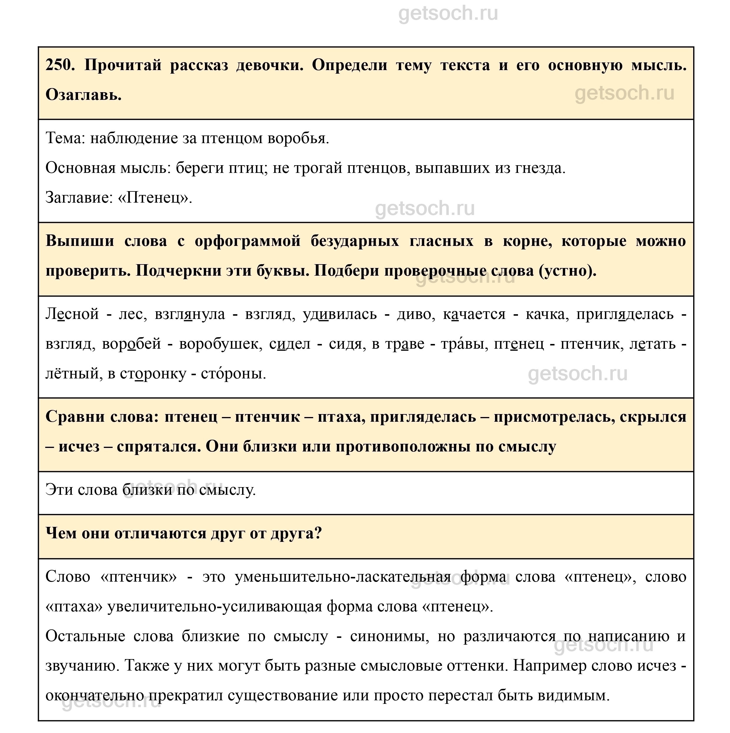 Рассмотрим ответы на Упражнение 250 из учебника по русскому языку для 3 класса Рамзаевой