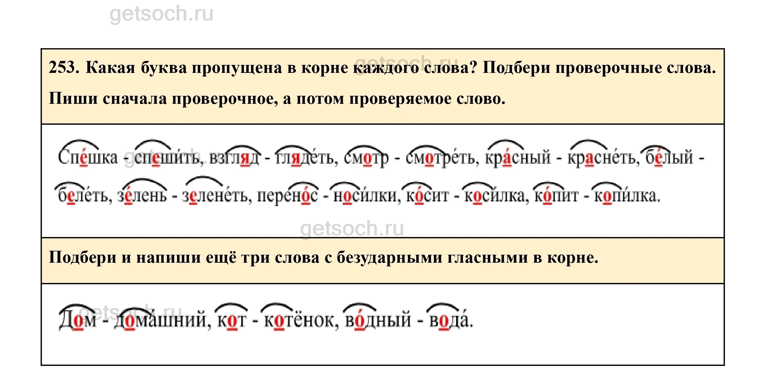 253. Какая буква пропущена в корне каждого слова? Подбери проверочные слова. Пиши сначала проверочное, а потом проверяемое слово.