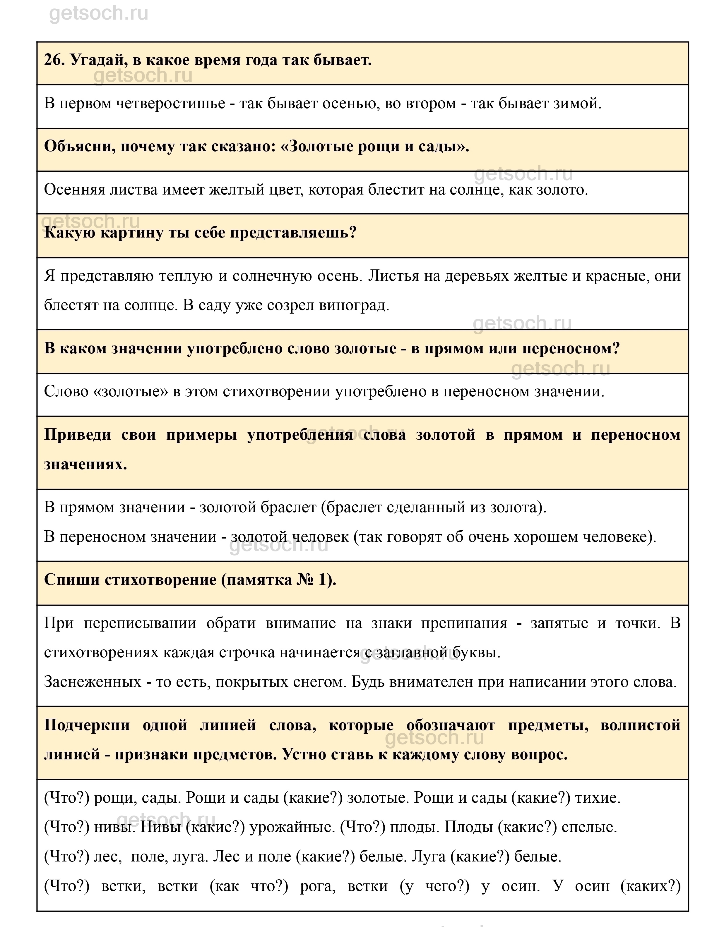 Рассмотрим ответы на Упражнение 26 из учебника по русскому языку для 3 класса Рамзаевой
