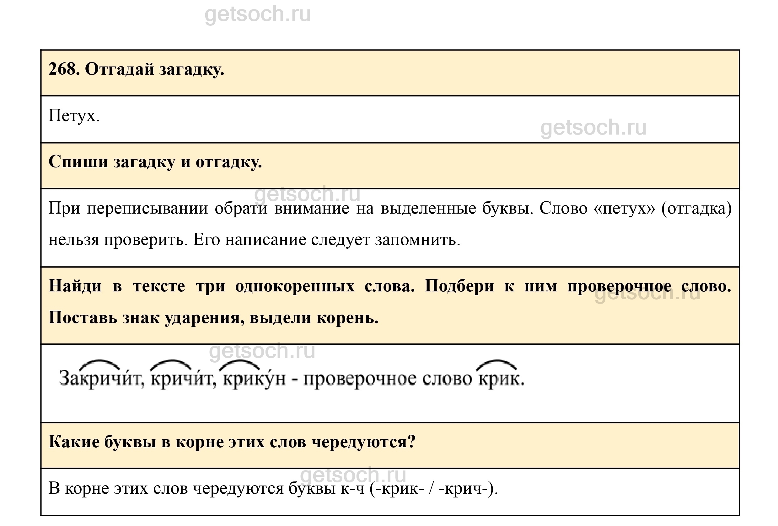Рассмотрим ответы на Упражнение 268 из учебника по русскому языку для 3 класса Рамзаевой