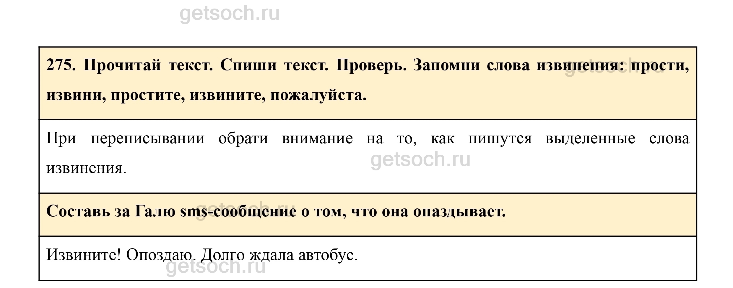 275. Прочитай текст. Спиши текст. Проверь. Запомни слова извинения: прости, извини, простите, извините, пожалуйста.