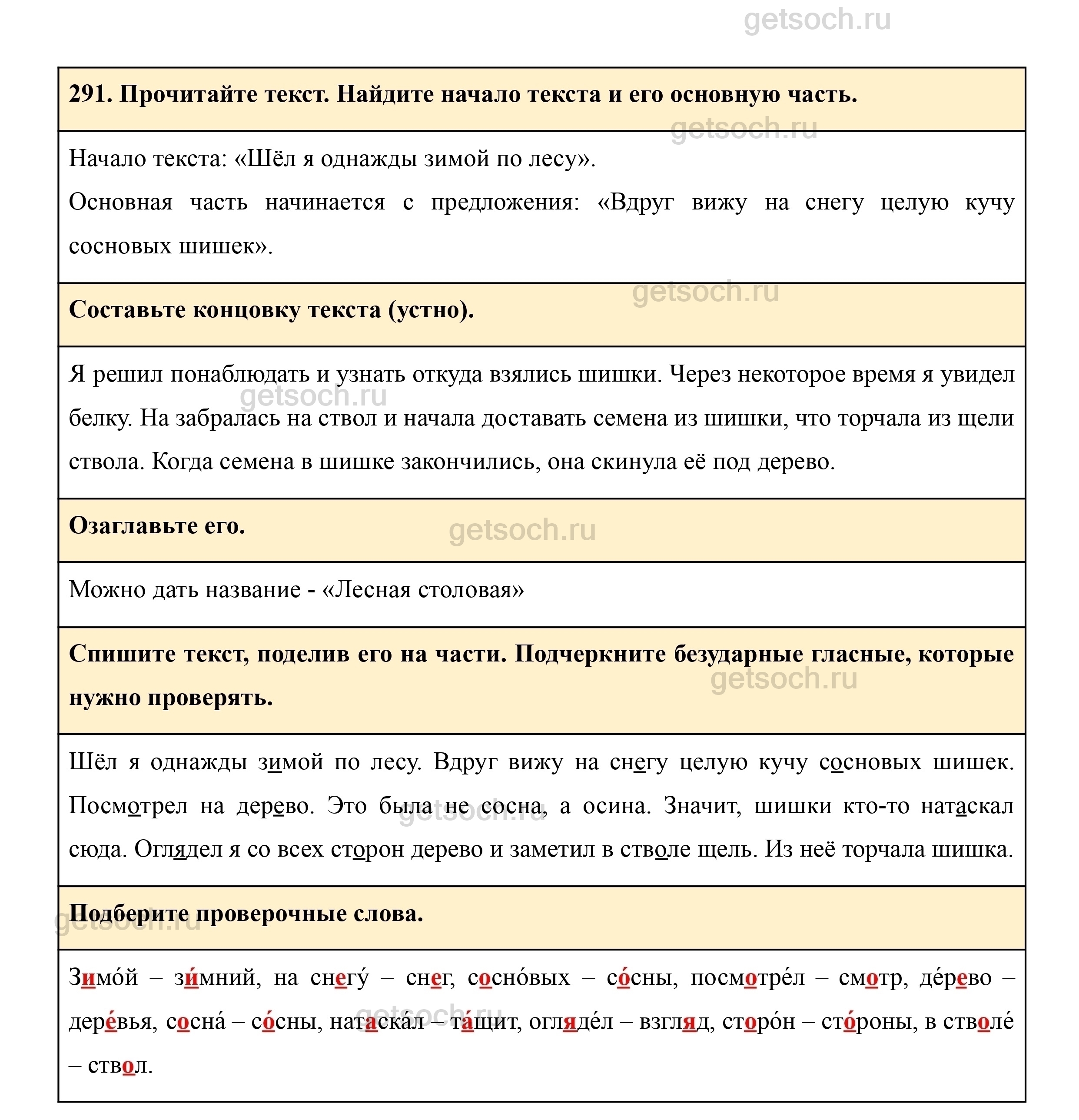 Рассмотрим ответы на Упражнение 291 из учебника по русскому языку для 3 класса Рамзаевой