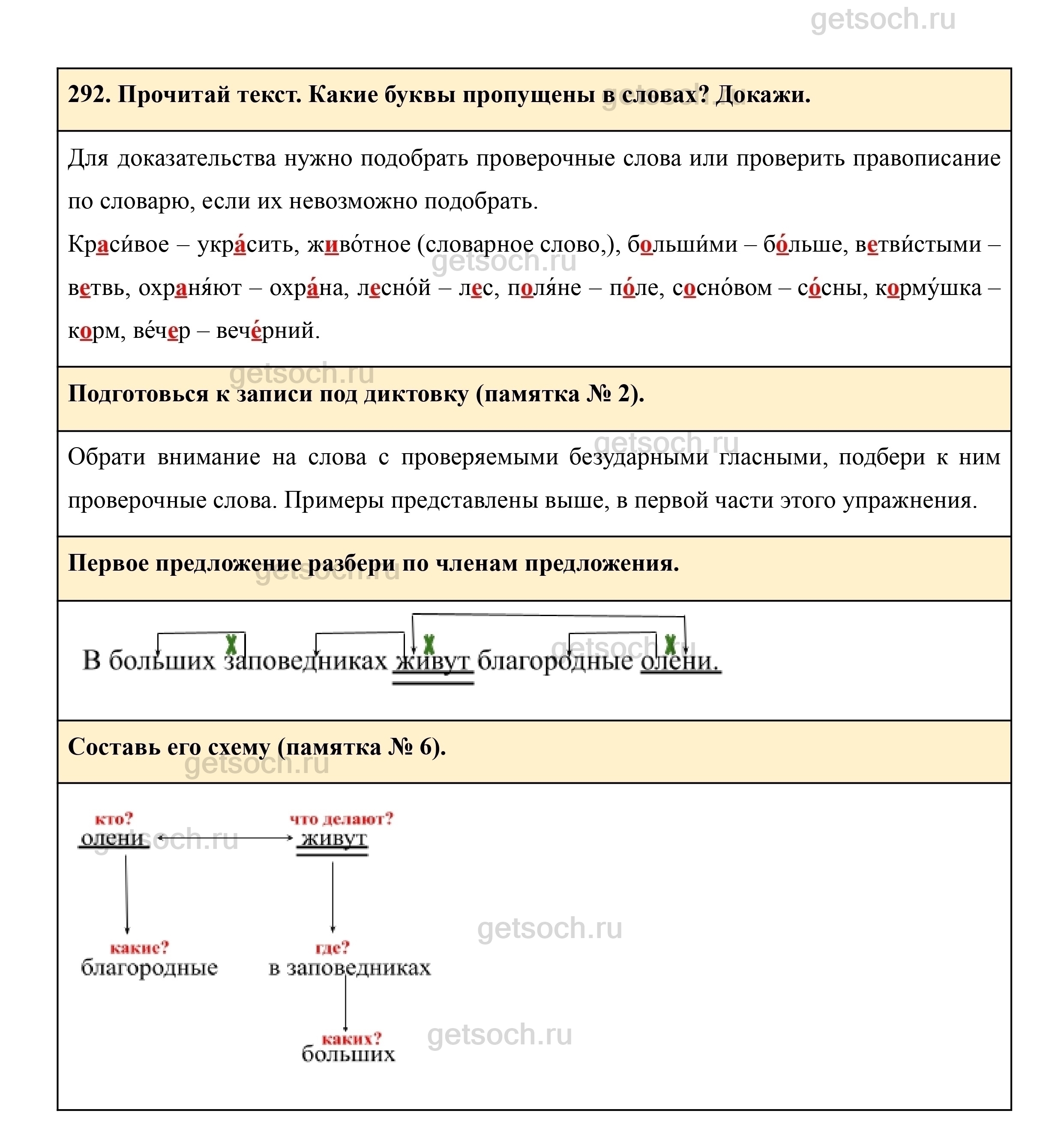 Рассмотрим ответы на Упражнение 292 из учебника по русскому языку для 3 класса Рамзаевой