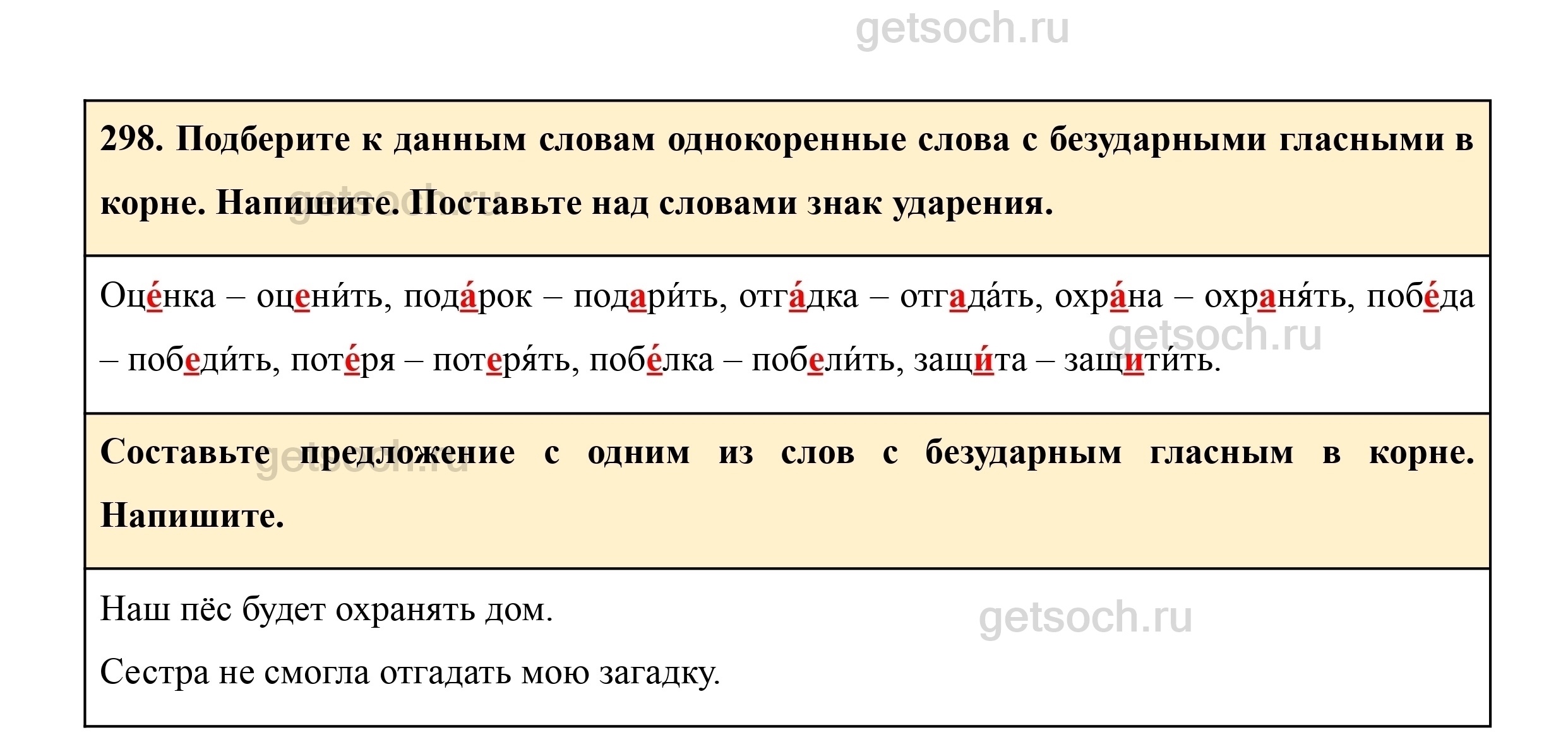 298. Подберите к данным словам однокоренные слова с безударными гласными в корне. Напишите. Поставьте над словами знак ударения.