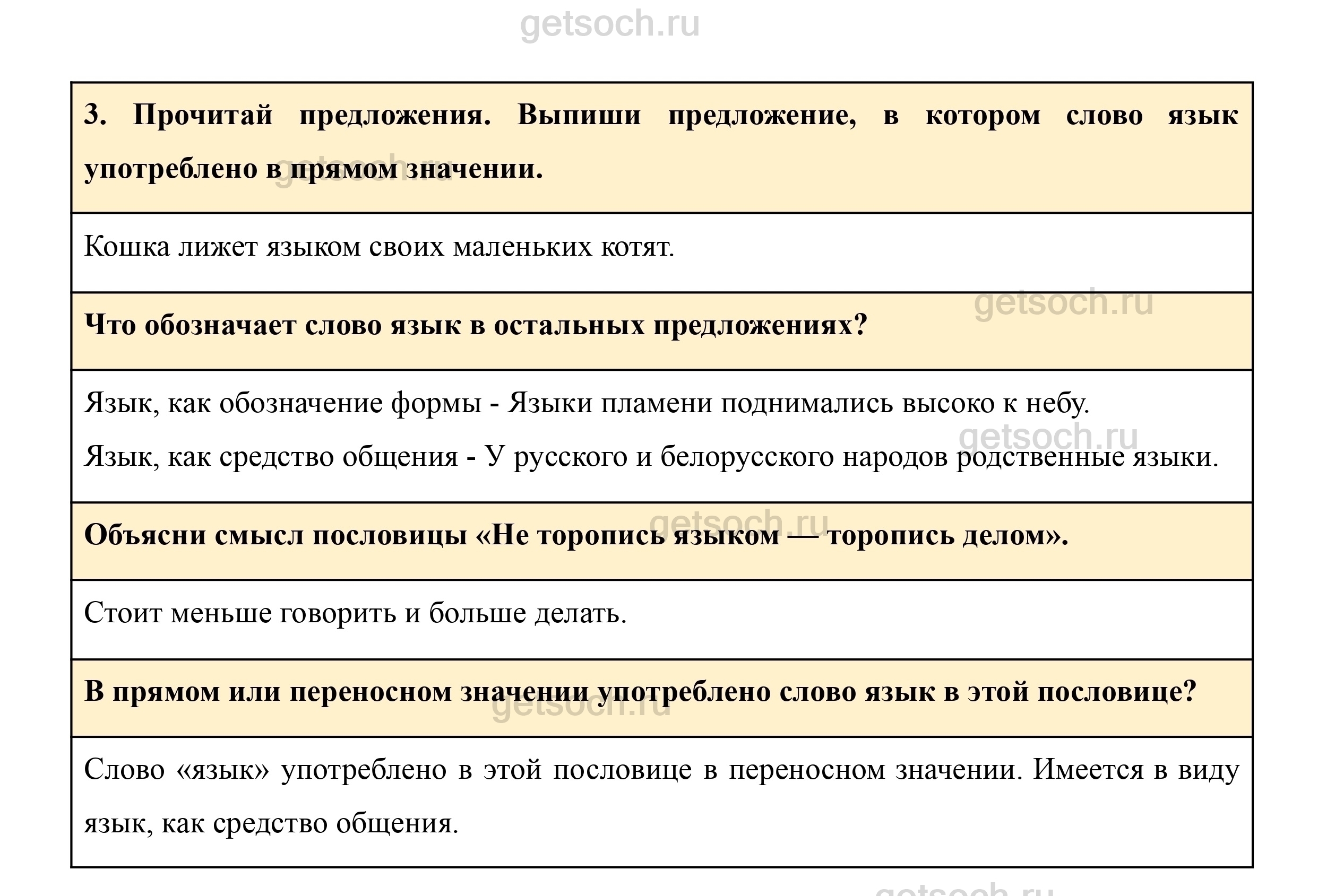 3. Прочитай предложения. Выпиши предложение, в котором слово язык употреблено в прямом значении.