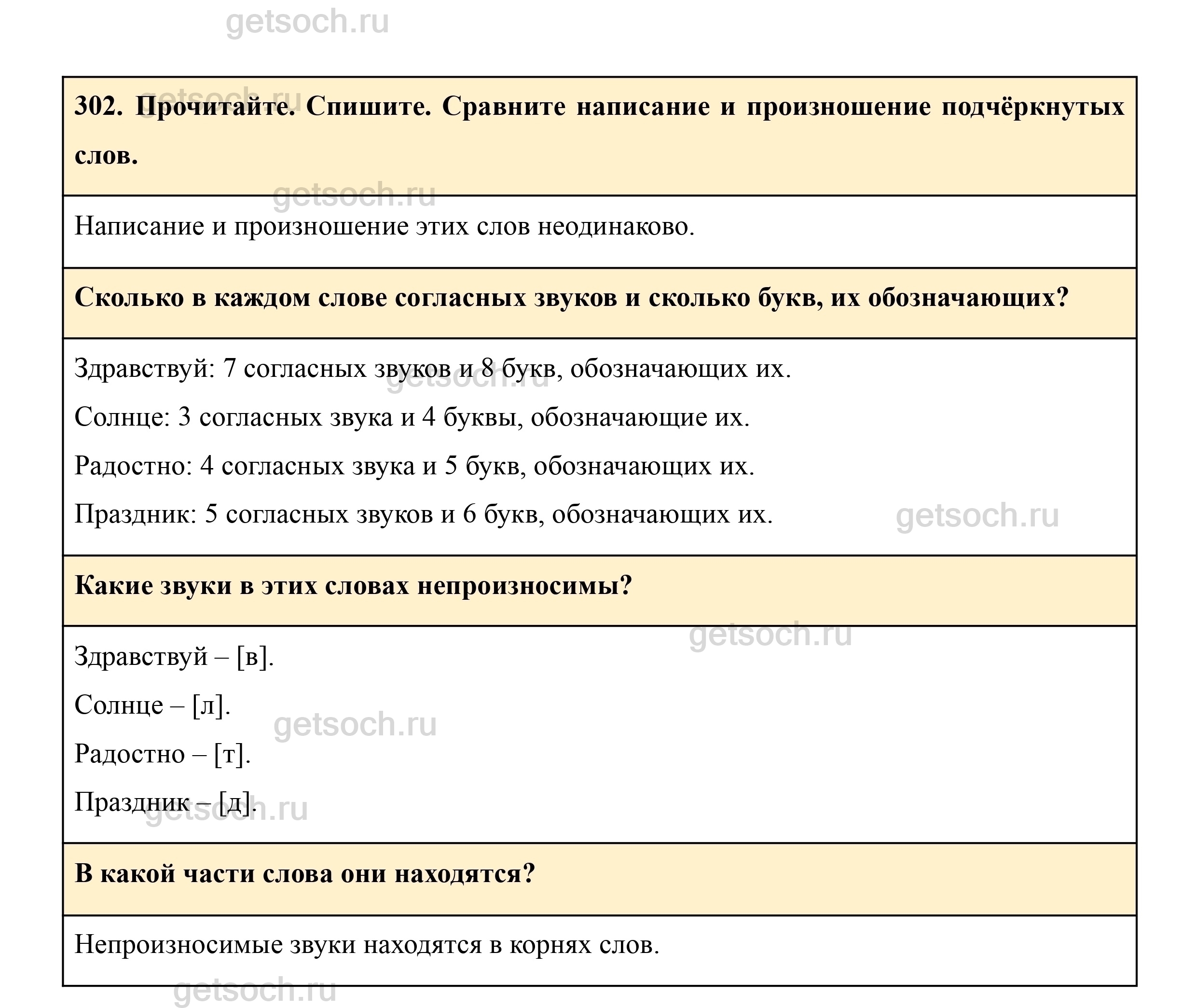 302. Прочитайте. Спишите. Сравните написание и произношение подчёркнутых слов.