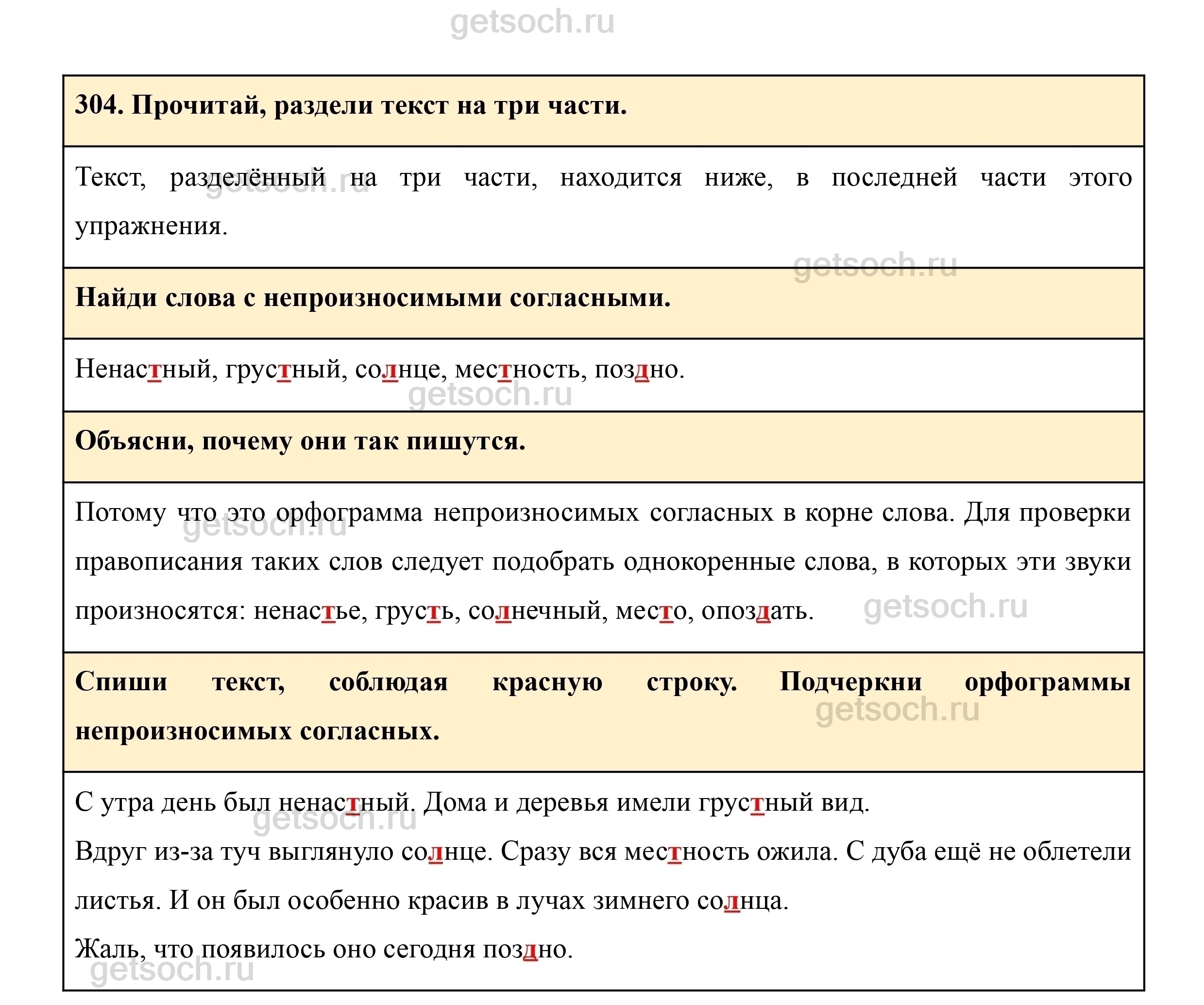 Рассмотрим ответы на Упражнение 304 из учебника по русскому языку для 3 класса Рамзаевой