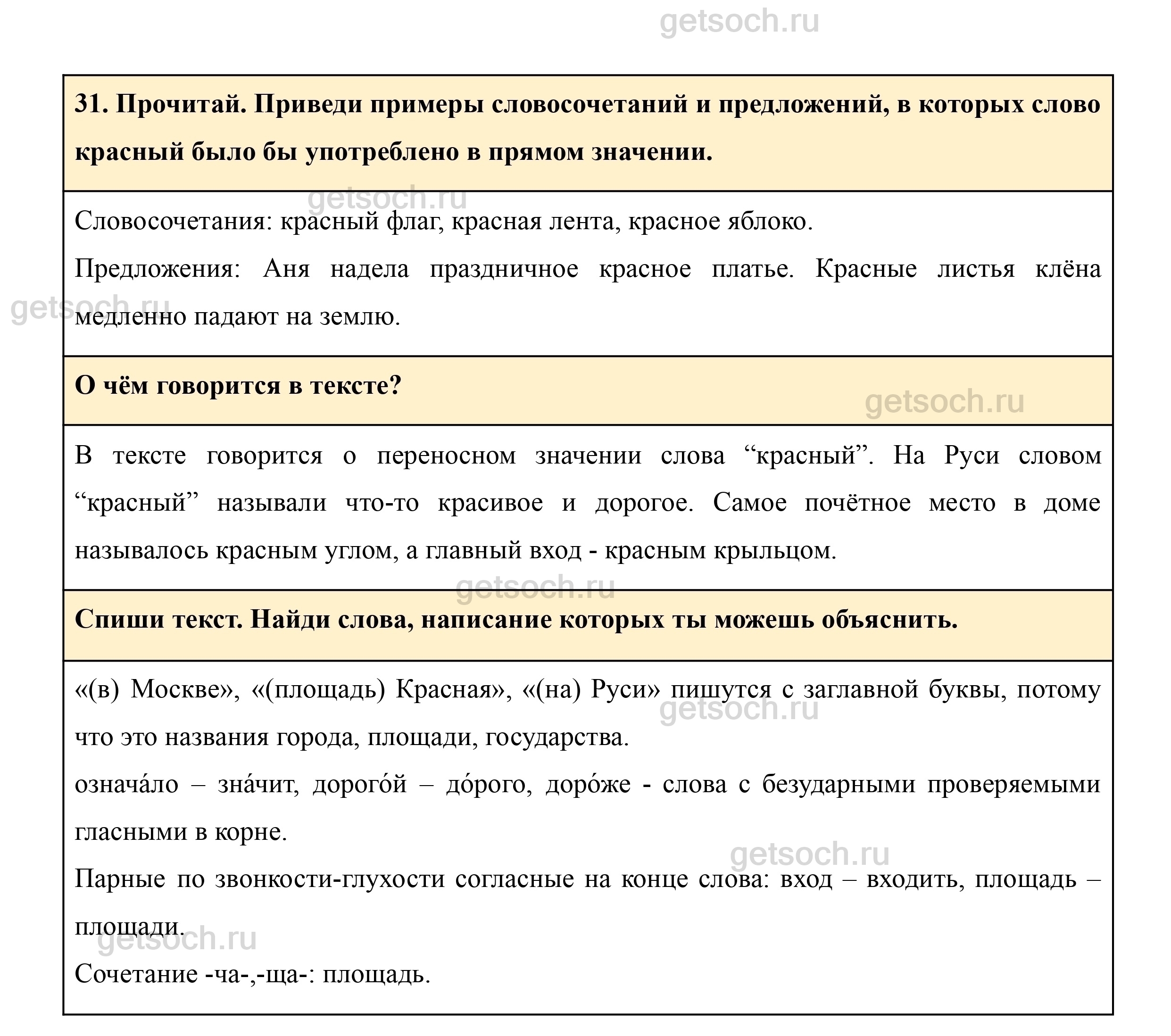 31. Прочитай. Приведи примеры словосочетаний и предложений, в которых слово красный было бы употреблено в прямом значении.