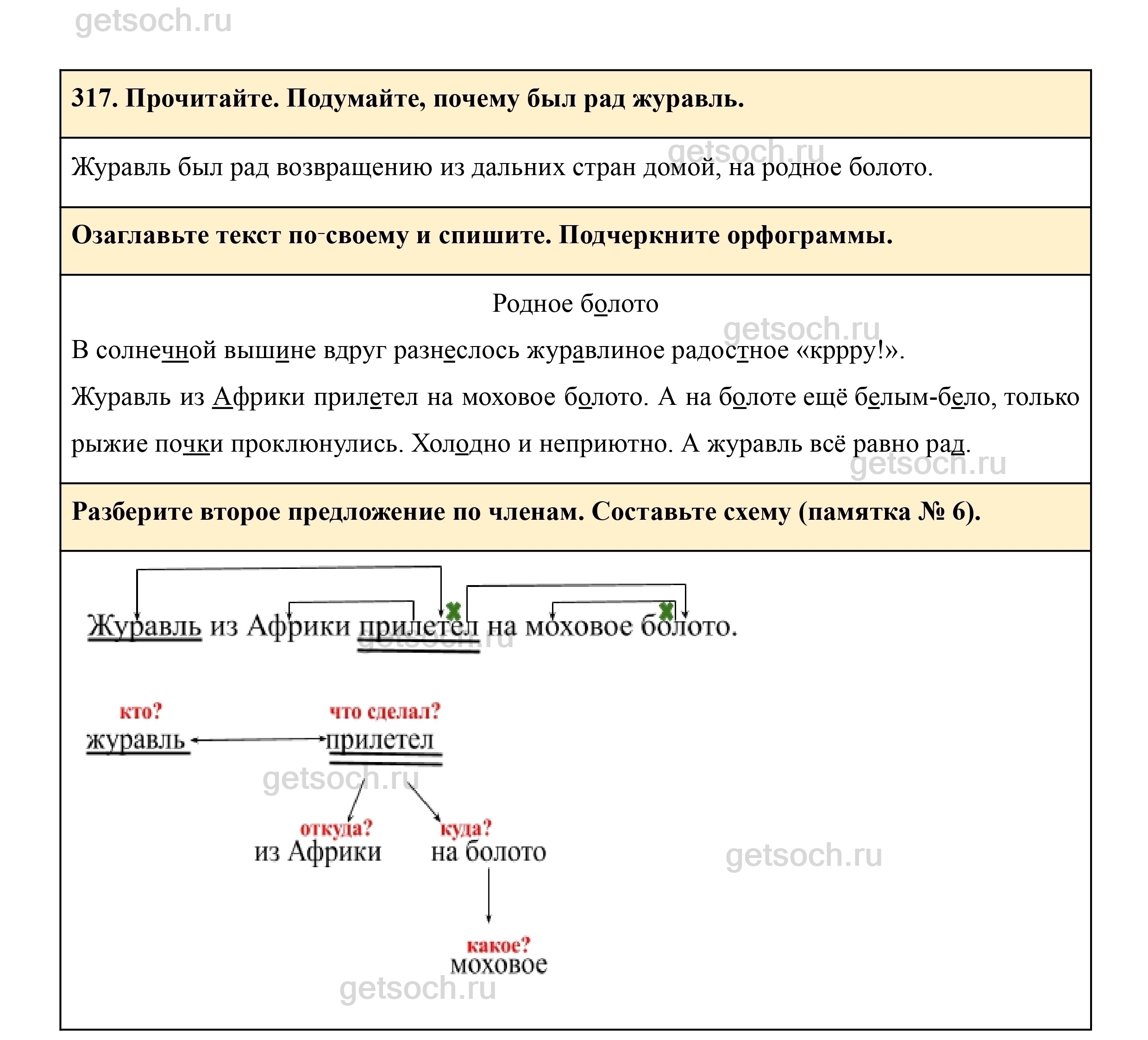 Рассмотрим ответы на Упражнение 317 из учебника по русскому языку для 3 класса Рамзаевой