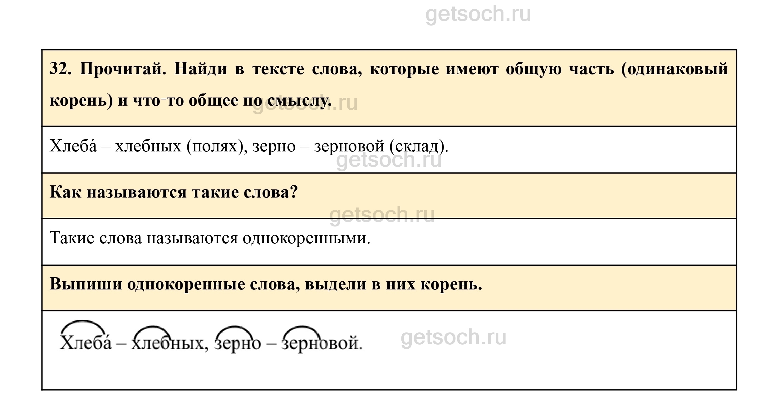 32. Прочитай. Найди в тексте слова, которые имеют общую часть (одинаковый корень) и что‑то общее по смыслу.
