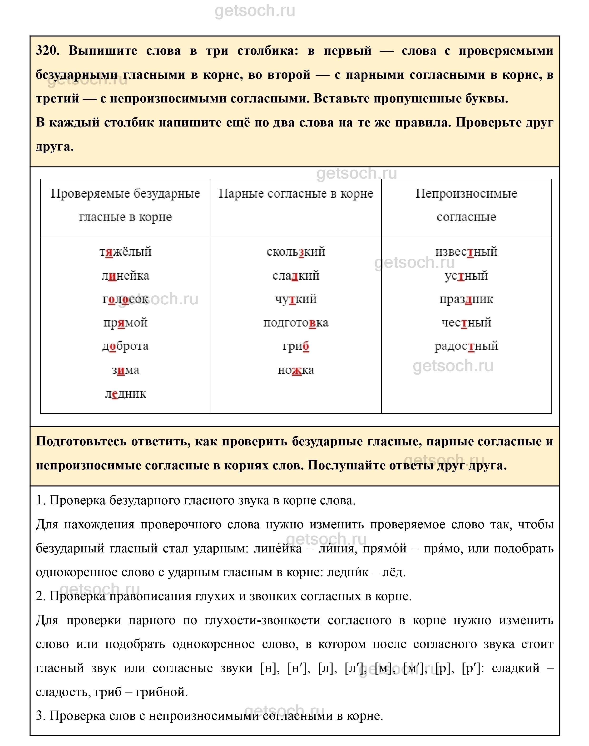 Рассмотрим ответы на Упражнение 320 из учебника по русскому языку для 3 класса Рамзаевой