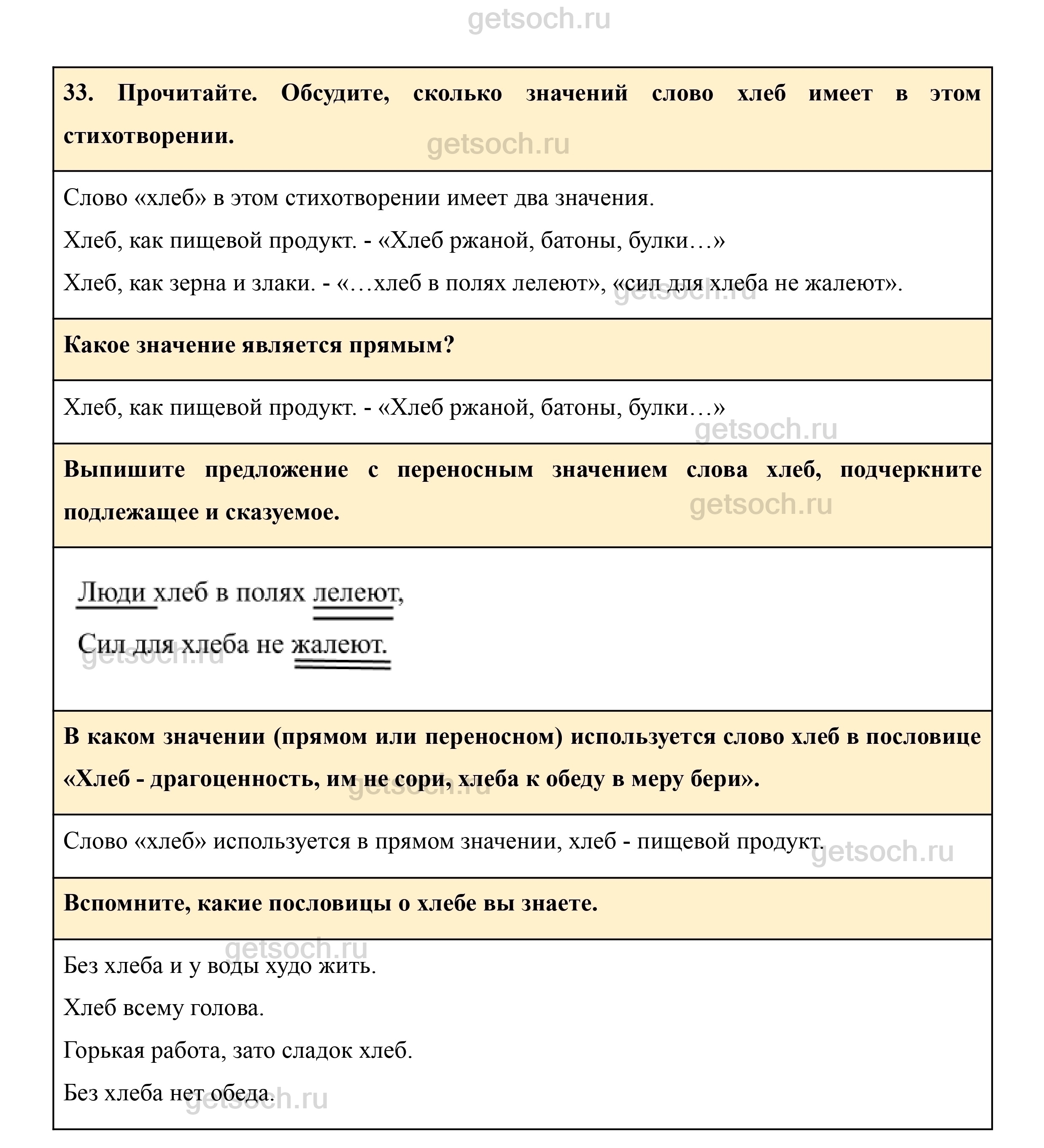 33. Прочитайте. Обсудите, сколько значений слово хлеб имеет в этом стихотворении.