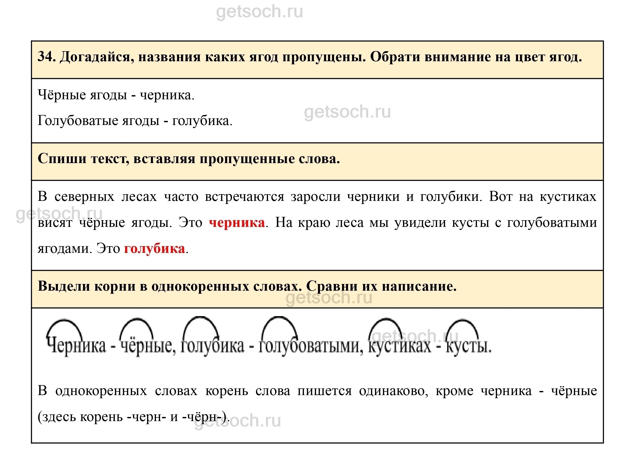 Рассмотрим ответы на Упражнение 34 из учебника по русскому языку для 3 класса Рамзаевой