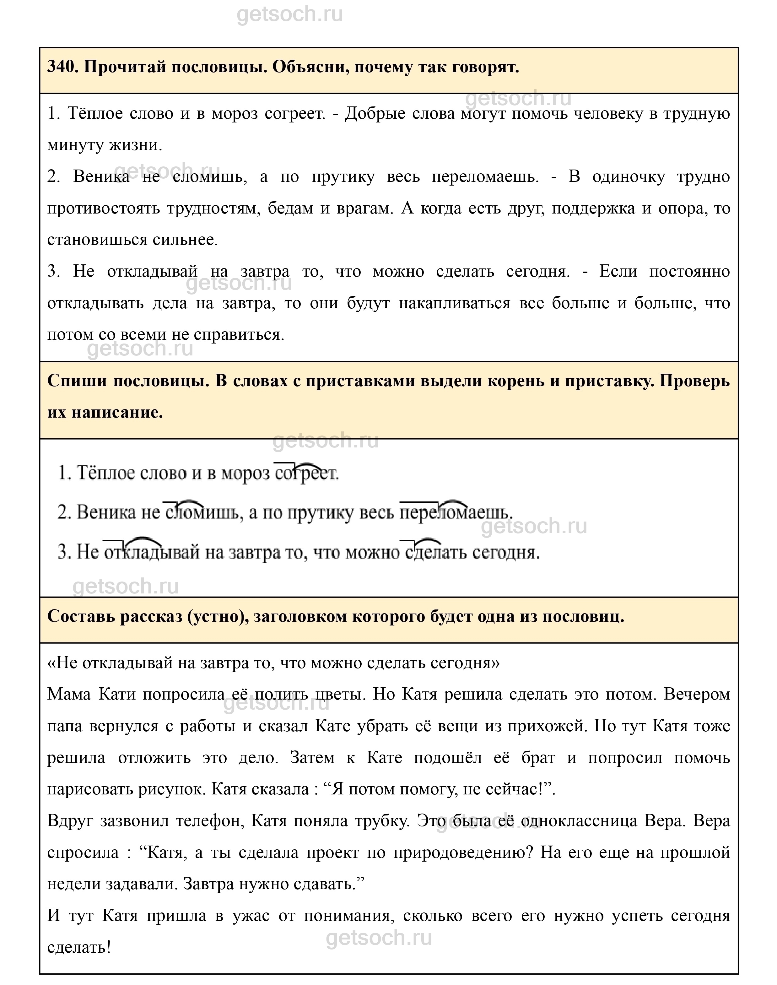 Рассмотрим ответы на Упражнение 340 из учебника по русскому языку для 3 класса Рамзаевой