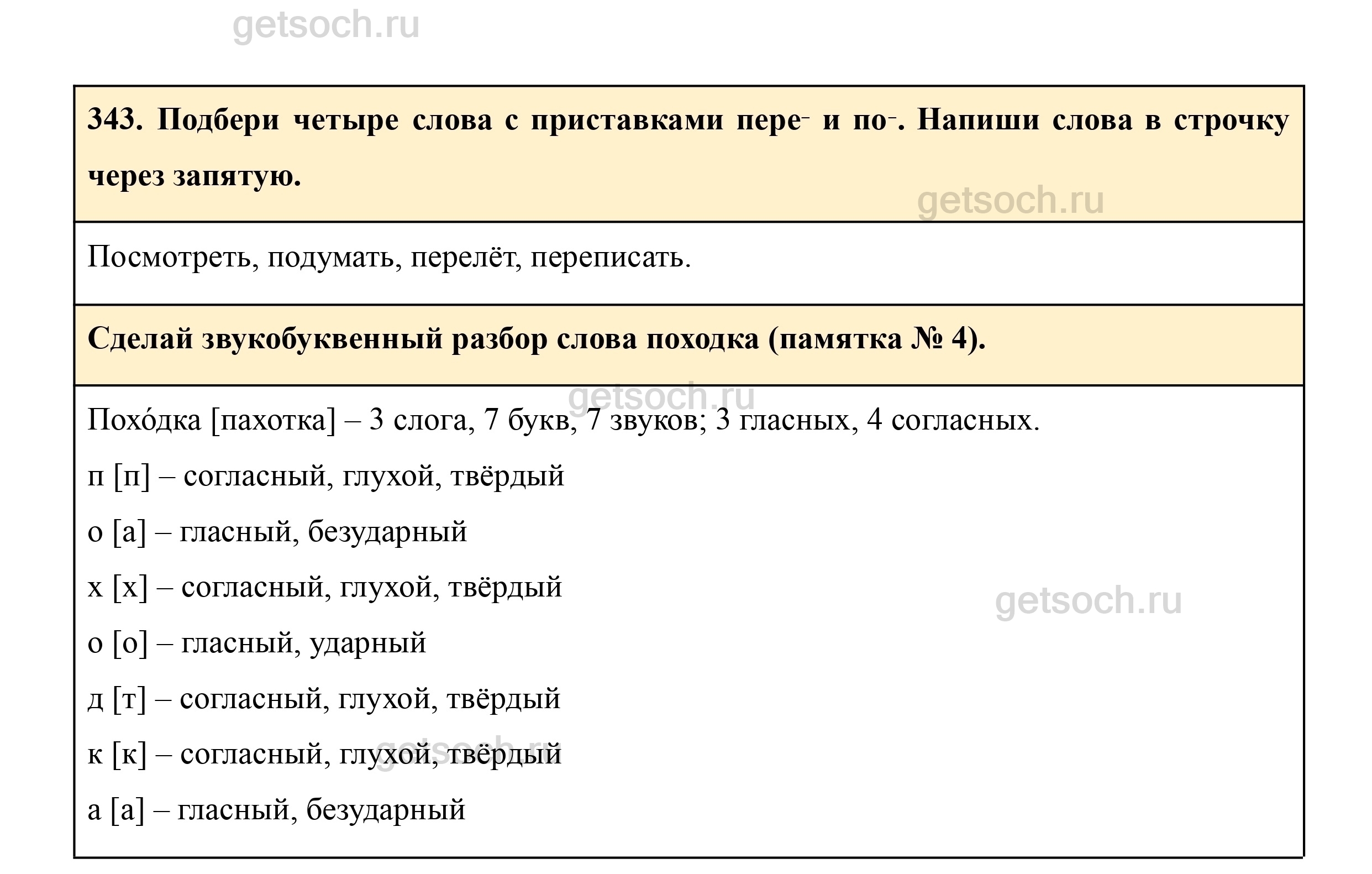 343. Подбери четыре слова с приставками пере‑ и по‑. Напиши слова в строчку через запятую.