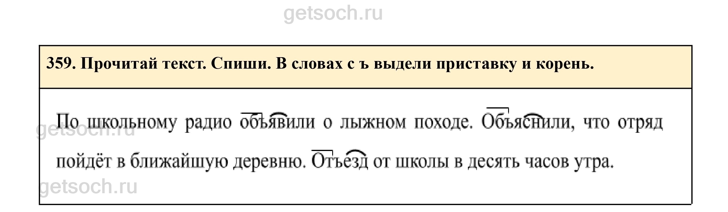359. Прочитай текст. Спиши. В словах с ъ выдели приставку и корень.
