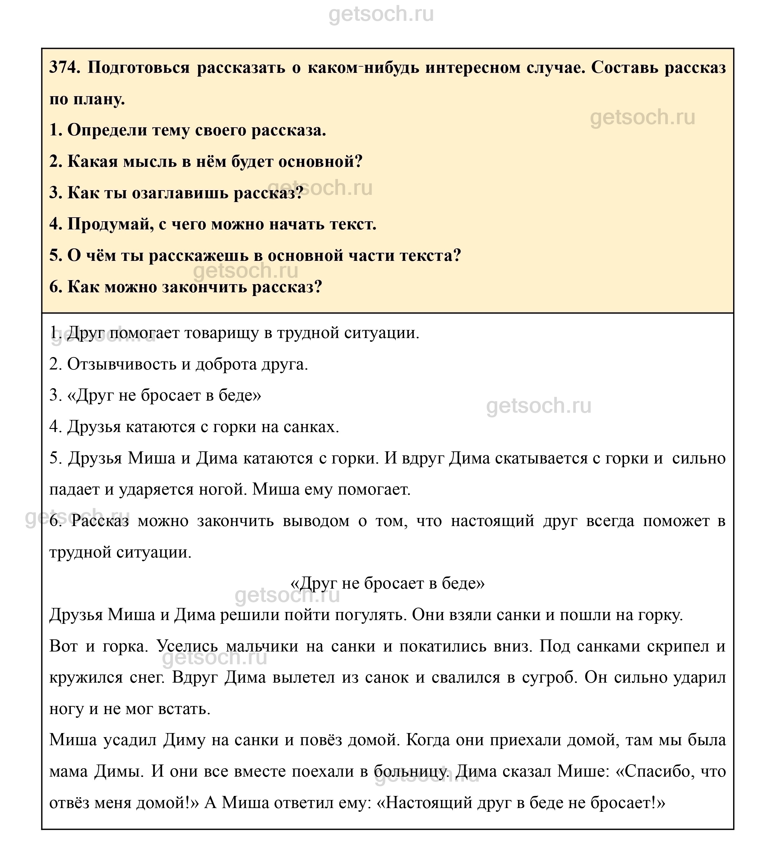 374. Подготовься рассказать о каком‑нибудь интересном случае. Составь рассказ по плану.