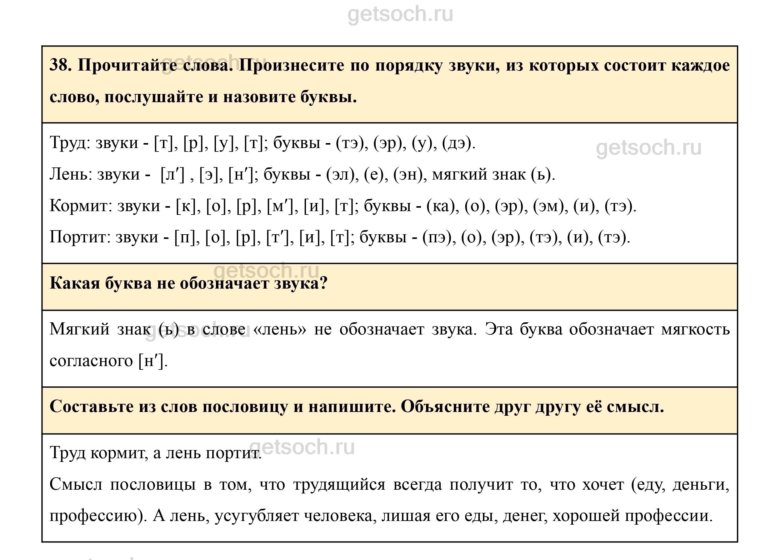 38. Прочитайте слова. Произнесите по порядку звуки, из которых состоит каждое слово, послушайте и назовите буквы.