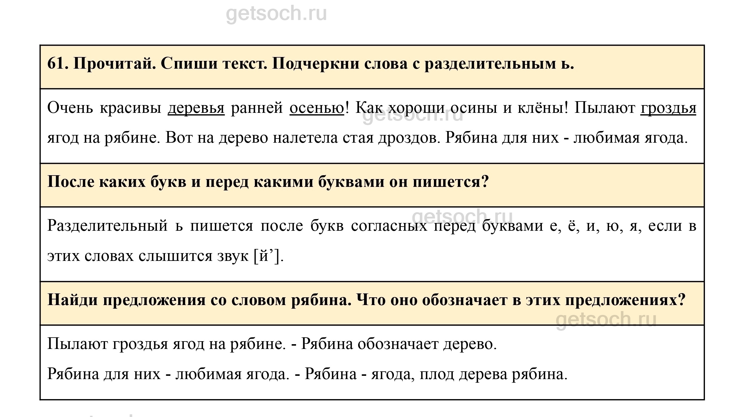 Рассмотрим ответы на Упражнение 61 из учебника по русскому языку для 3 класса Рамзаевой