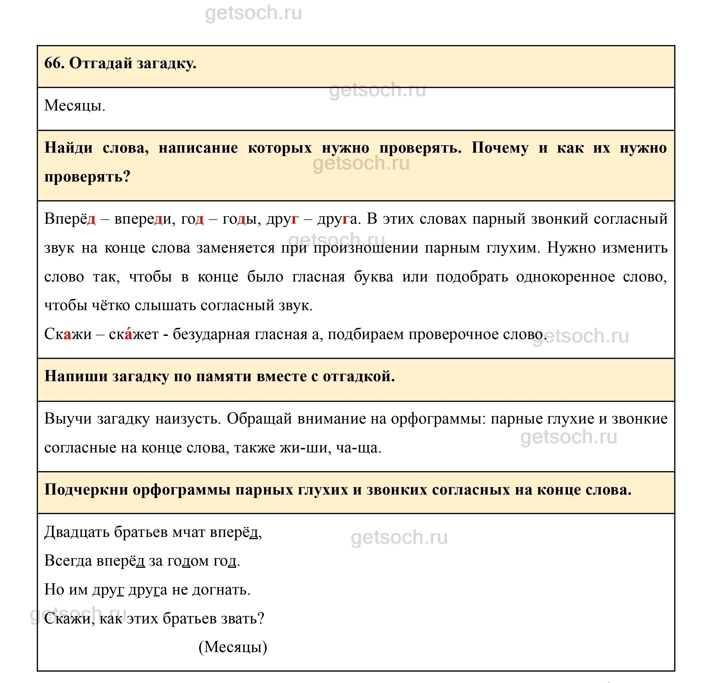Рассмотрим ответы на Упражнение 66 из учебника по русскому языку для 3 класса Рамзаевой