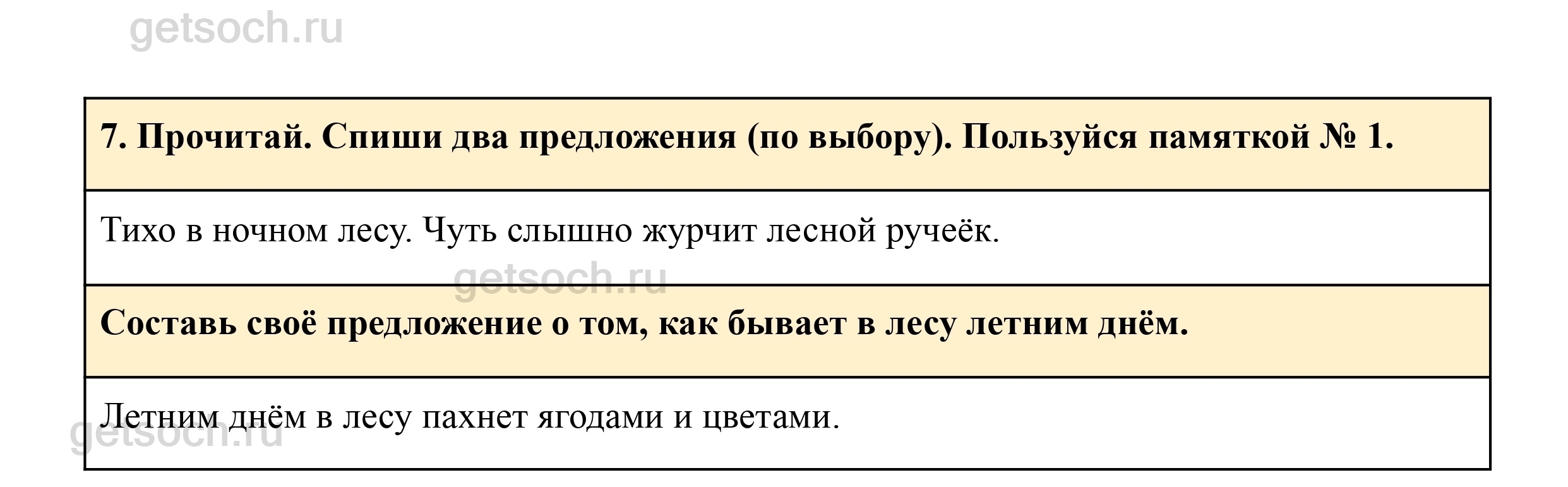 7. Прочитай. Спиши два предложения (по выбору). Пользуйся памяткой № 1.