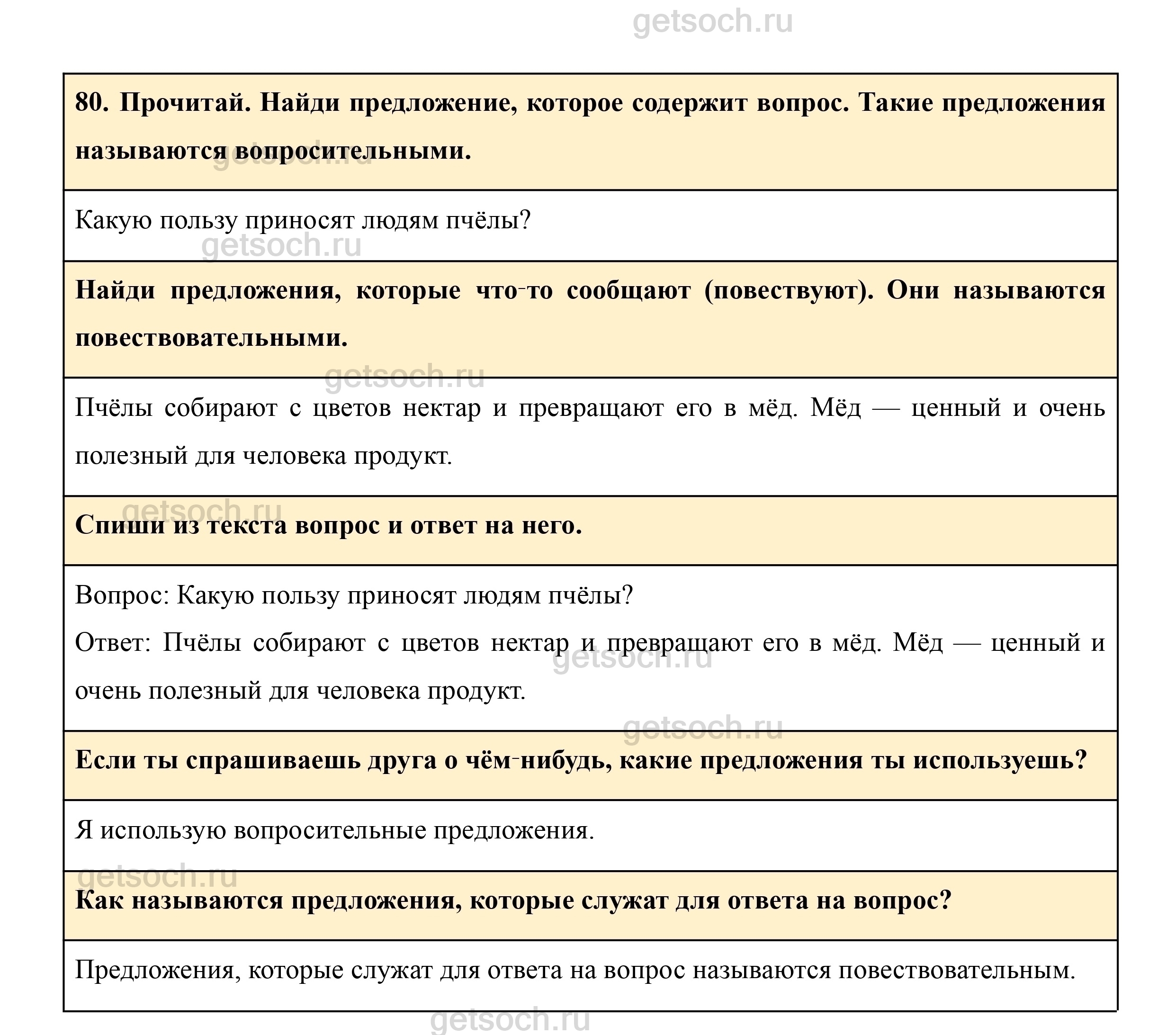 80. Прочитай. Найди предложение, которое содержит вопрос. Такие предложения называются вопросительными.