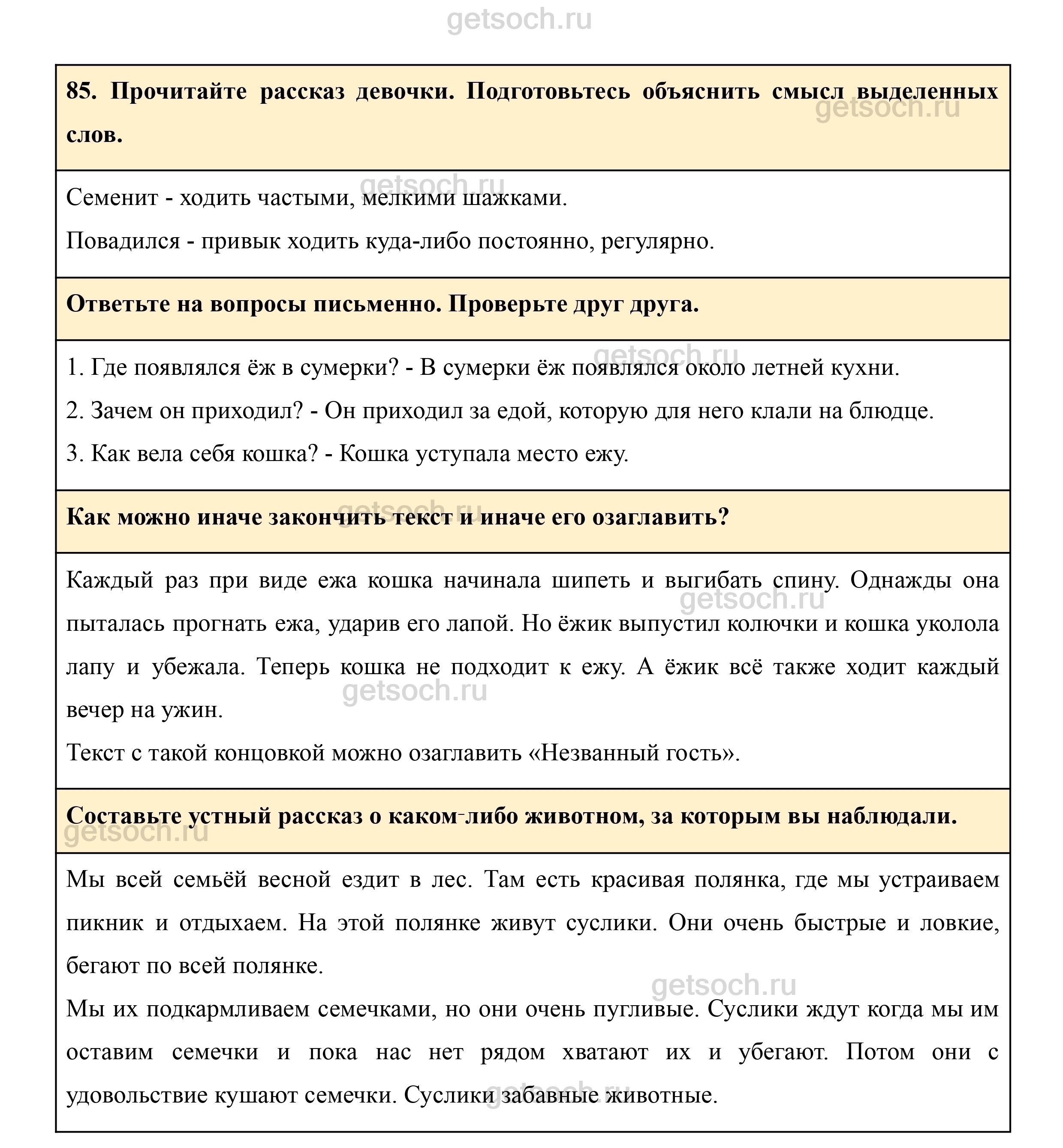 85. Прочитайте рассказ девочки. Подготовьтесь объяснить смысл выделенных слов.