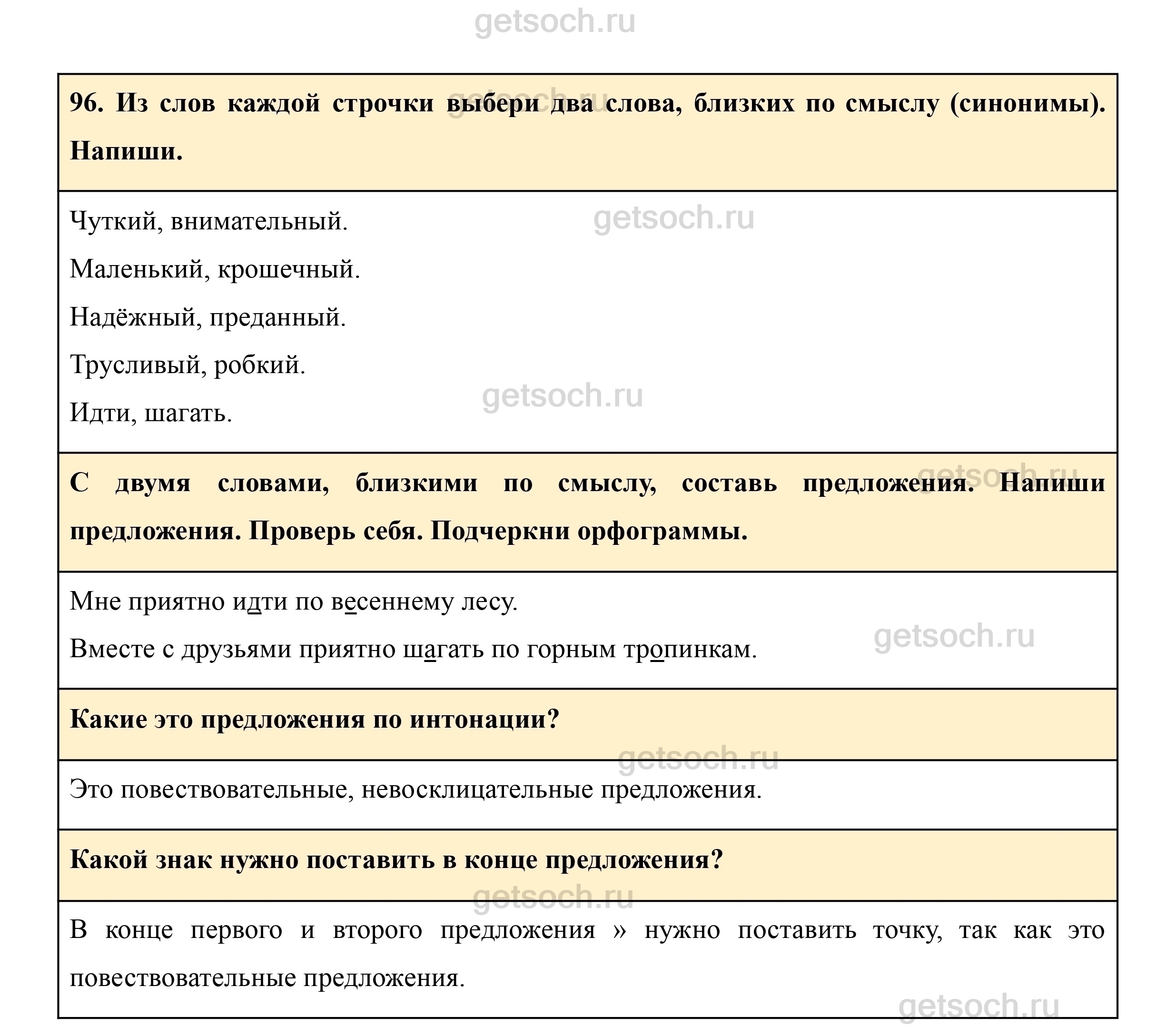 Рассмотрим ответы на Упражнение 96 из учебника по русскому языку для 3 класса Рамзаевой
