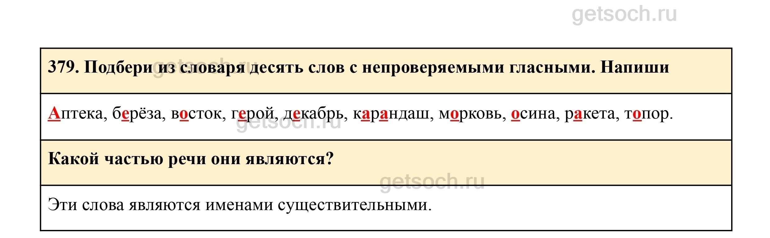 379. Подбери из словаря десять слов с непроверяемыми гласными. Напиши