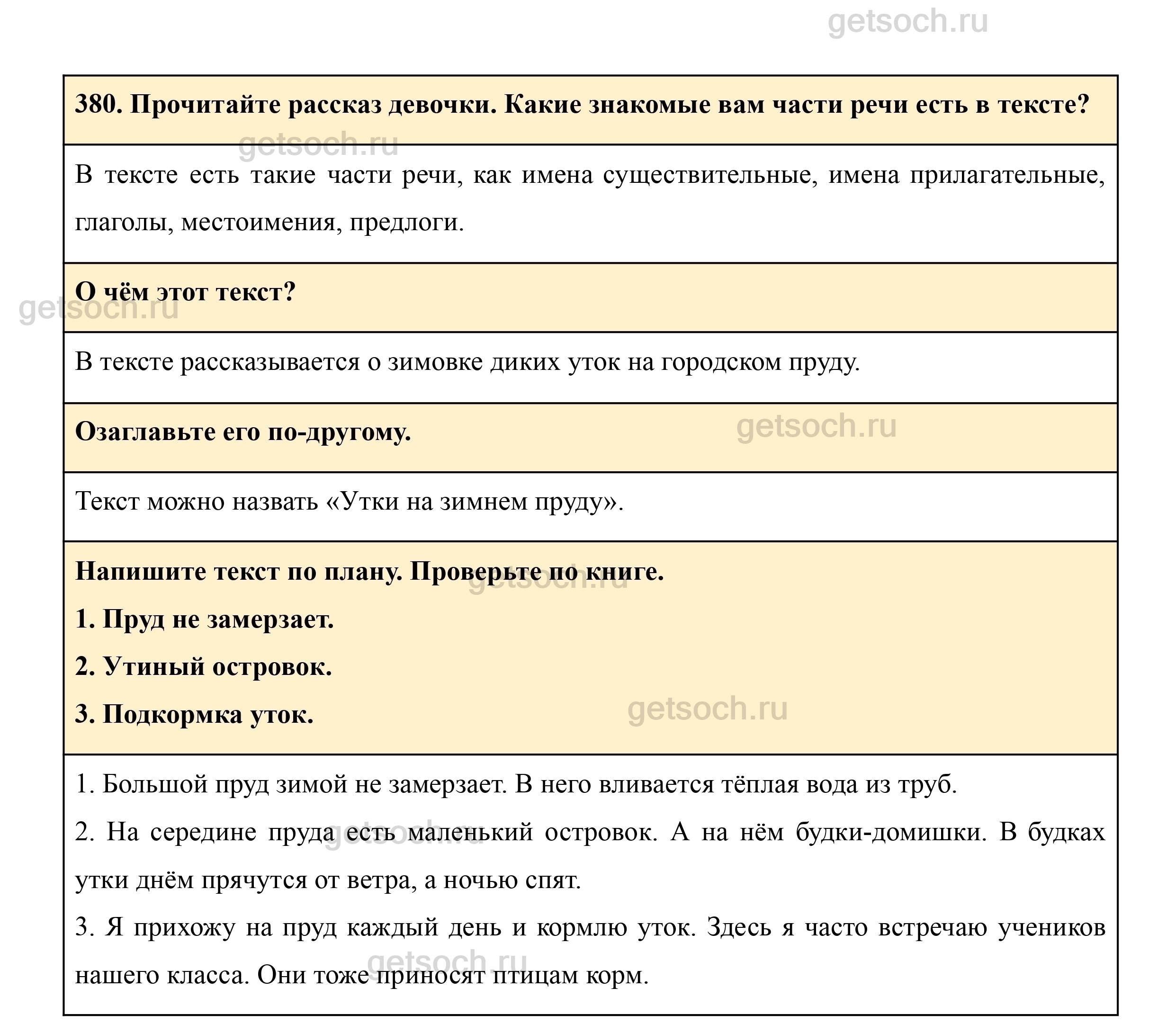 Рассмотрим ответы на Упражнение 380 из учебника по русскому языку для 3 класса Рамзаевой