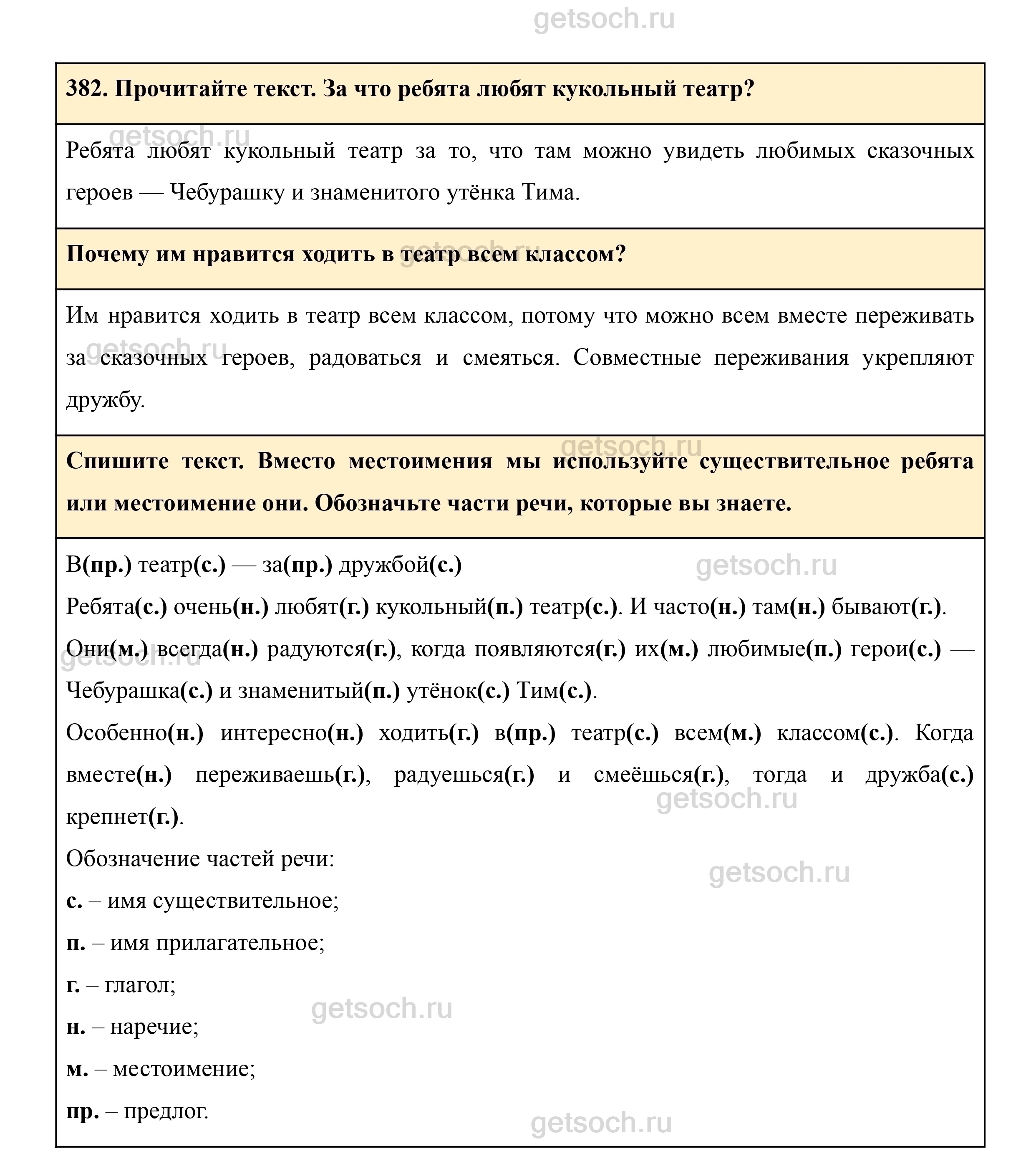 Рассмотрим ответы на Упражнение 382 из учебника по русскому языку для 3 класса Рамзаевой