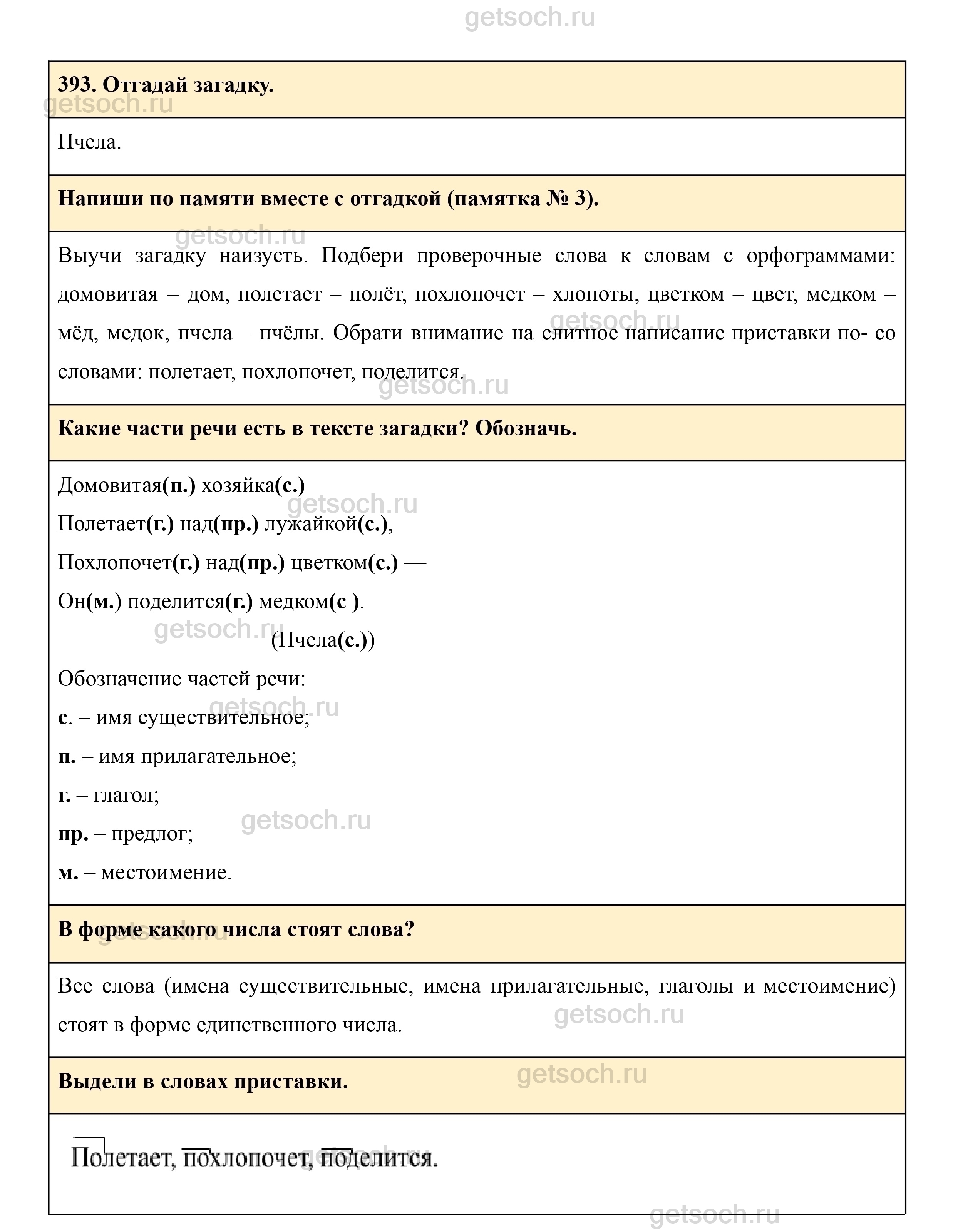 Рассмотрим ответы на Упражнение 393 из учебника по русскому языку для 3 класса Рамзаевой