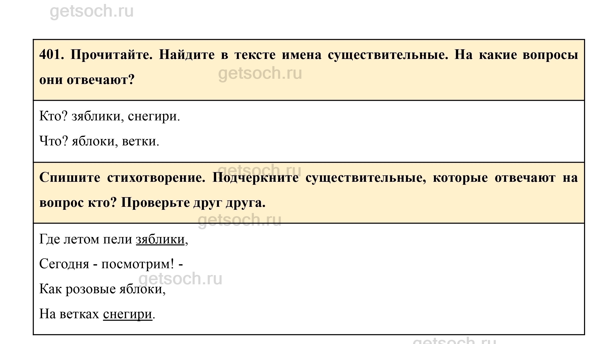 401. Прочитайте. Найдите в тексте имена существительные. На какие вопросы они отвечают?