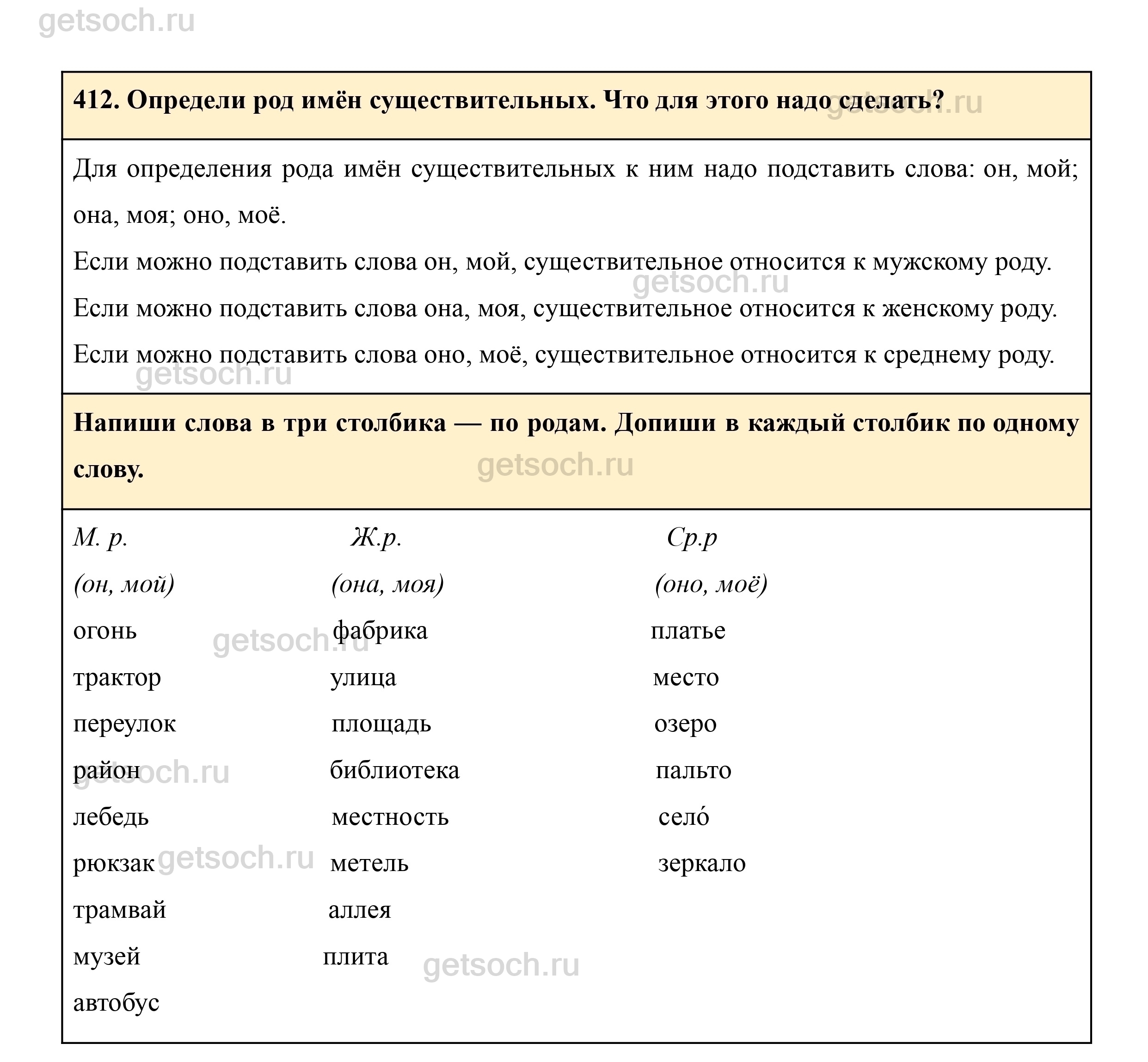 Рассмотрим ответы на Упражнение 412 из учебника по русскому языку для 3 класса Рамзаевой