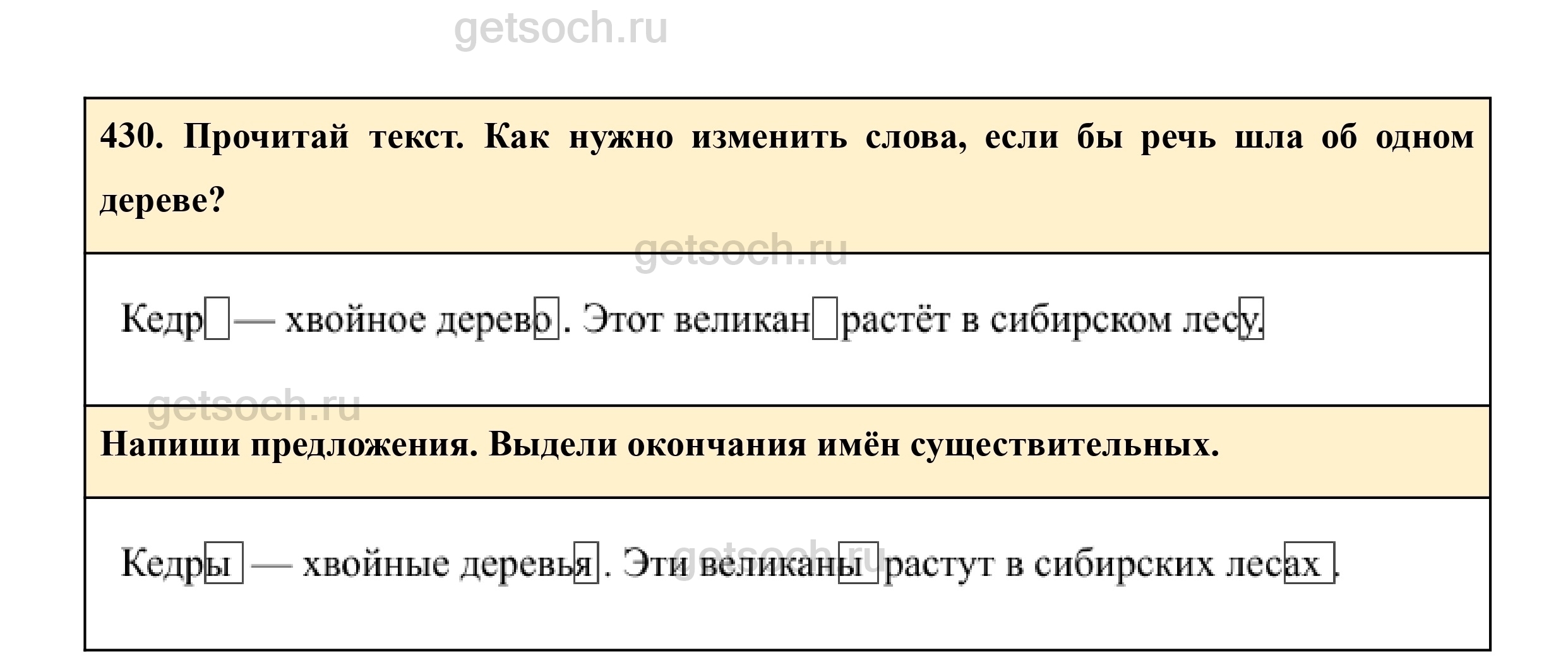 430. Прочитай текст. Как нужно изменить слова, если бы речь шла об одном дереве?