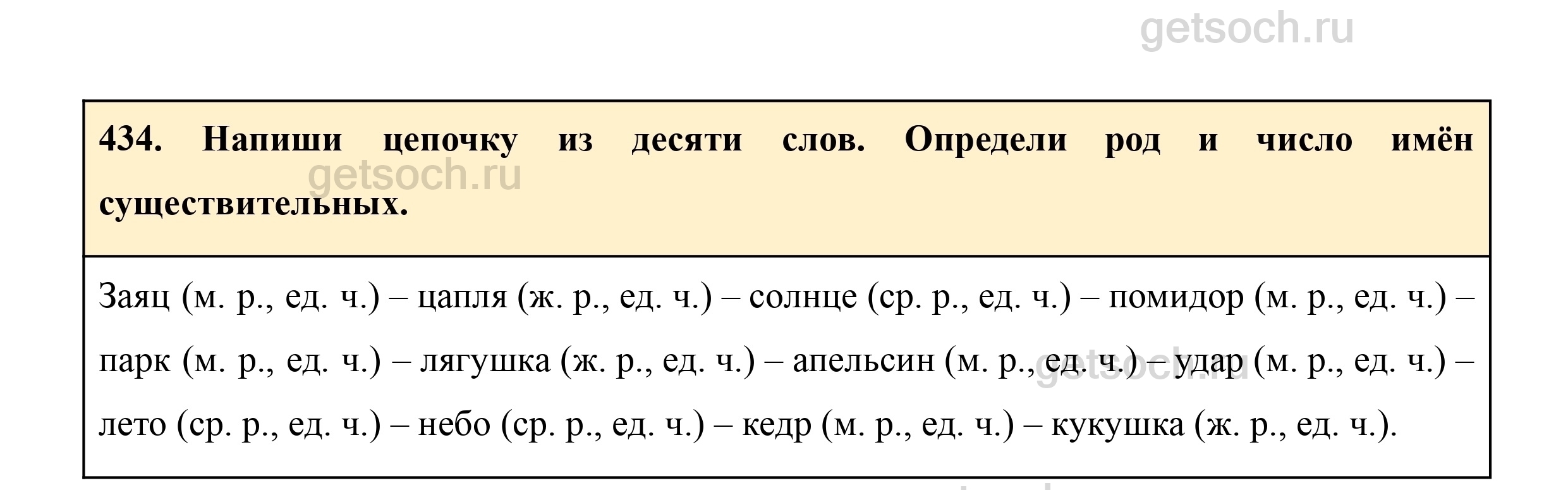 434. Напиши цепочку из десяти слов. Определи род и число имён существительных.