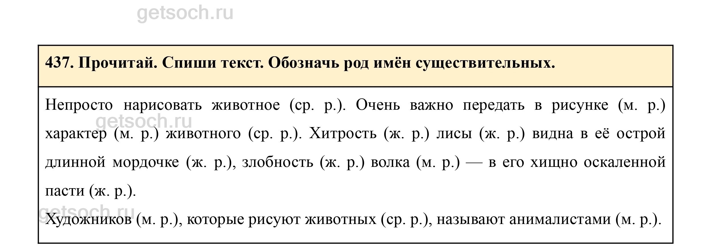 437. Прочитай. Спиши текст. Обозначь род имён существительных.