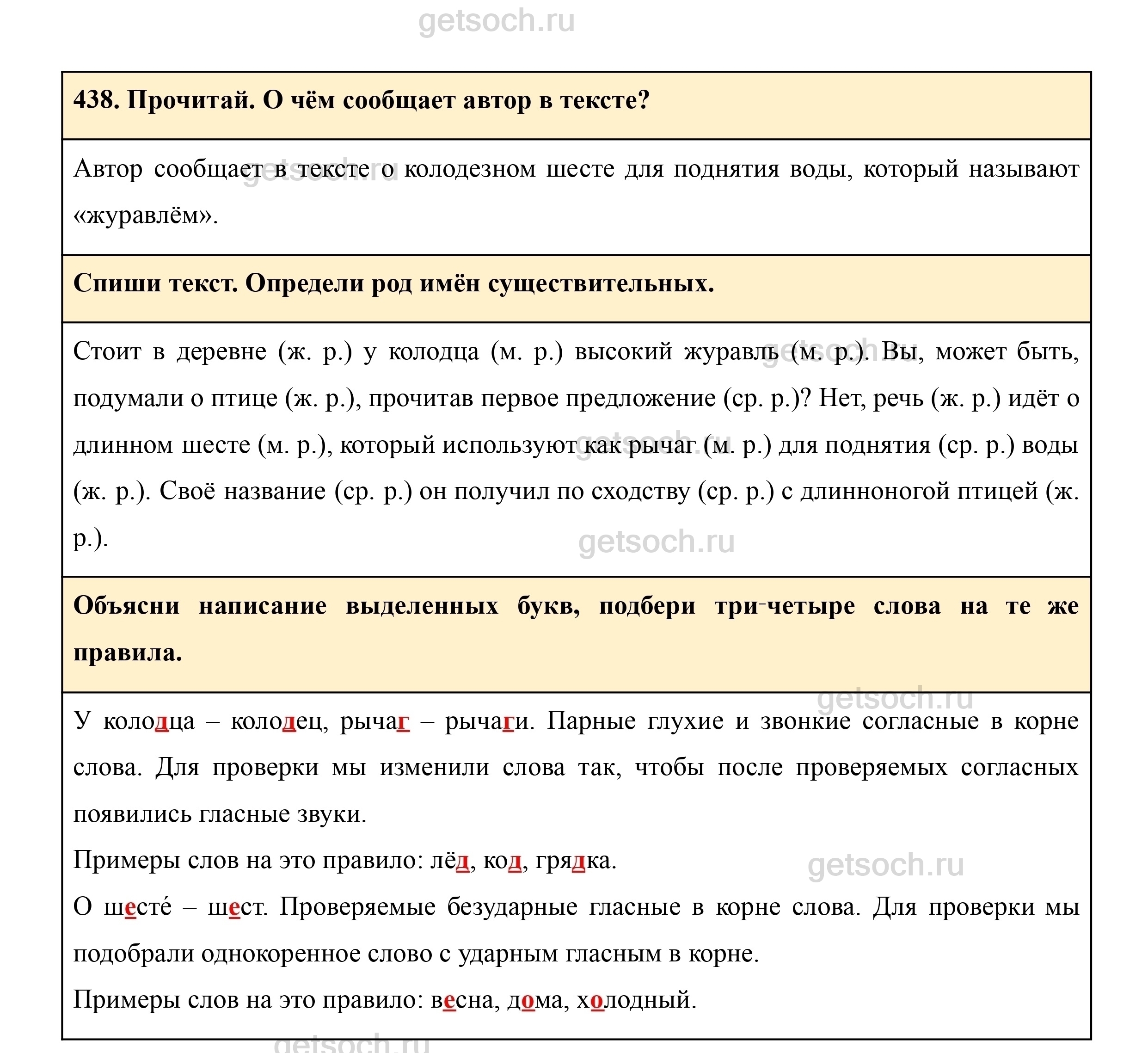 Рассмотрим ответы на Упражнение 438 из учебника по русскому языку для 3 класса Рамзаевой