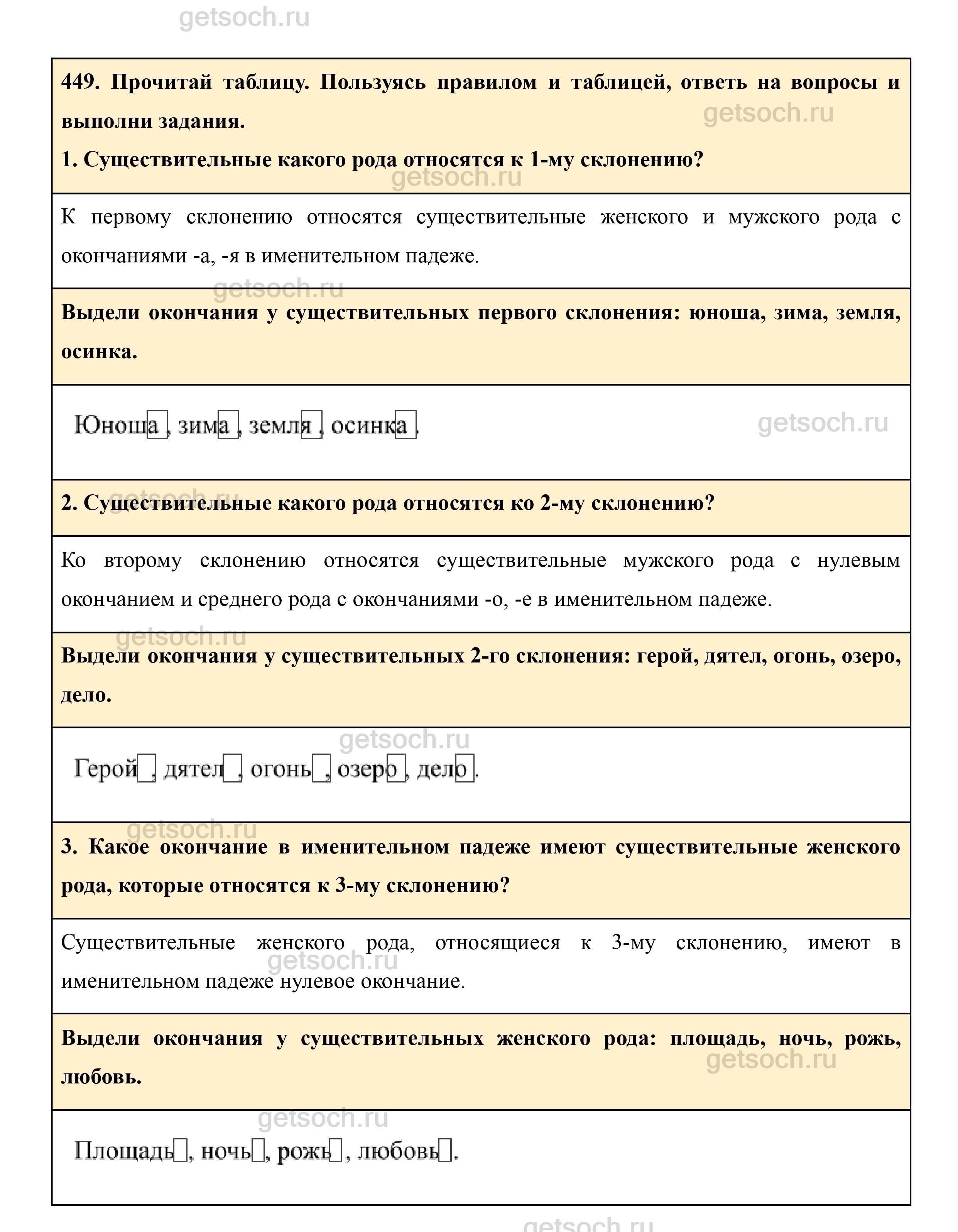 449. Прочитай таблицу. Пользуясь правилом и таблицей, ответь на вопросы и выполни задания.