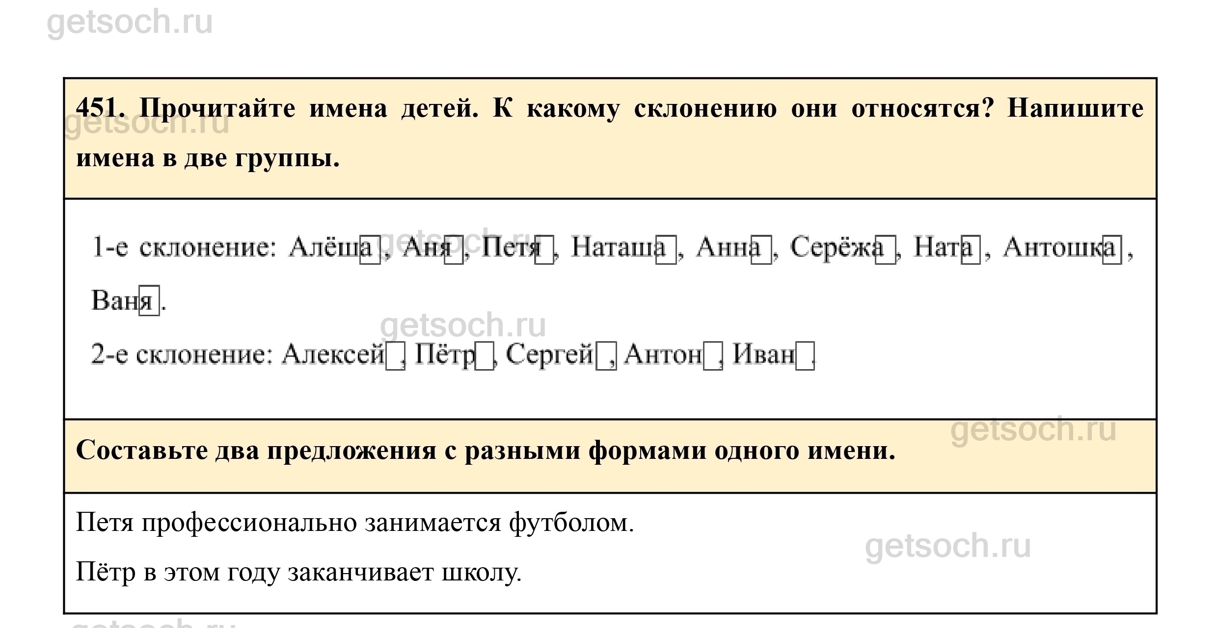 451. Прочитайте имена детей. К какому склонению они относятся? Напишите имена в две группы.