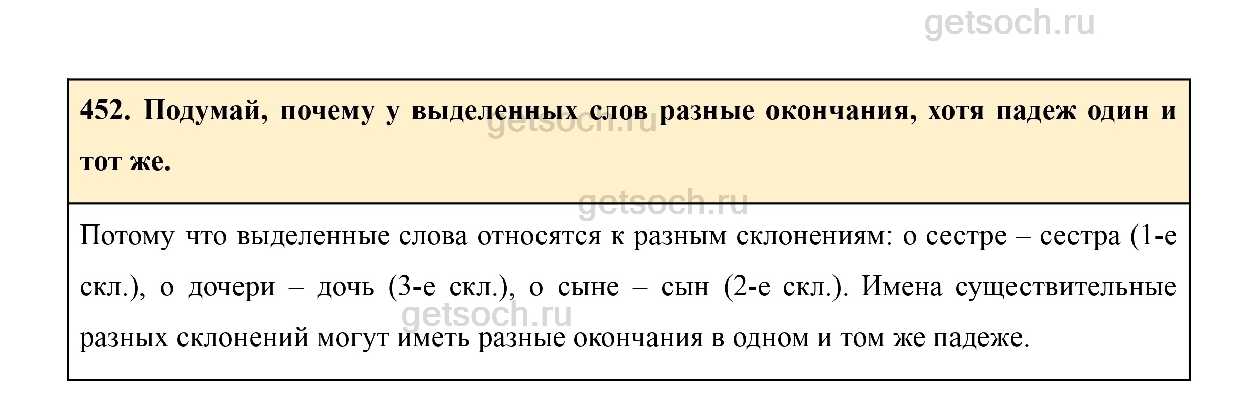 452. Подумай, почему у выделенных слов разные окончания, хотя падеж один и тот же.
