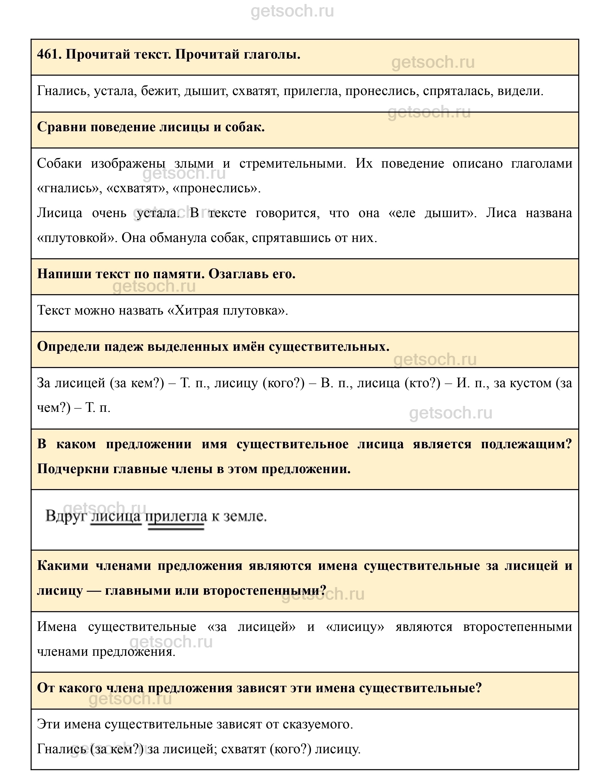 Рассмотрим ответы на Упражнение 461 из учебника по русскому языку для 3 класса Рамзаевой