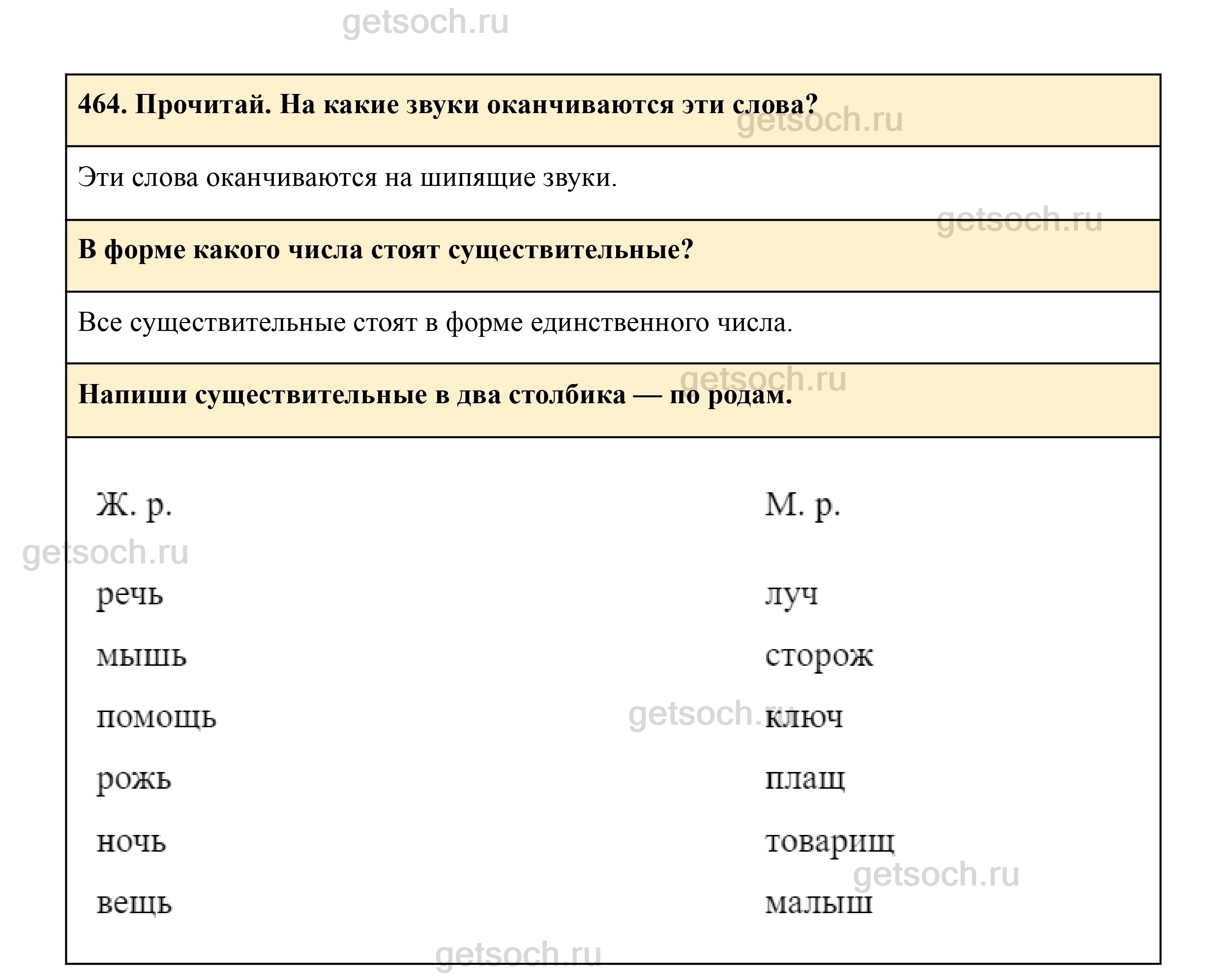 464. Прочитай. На какие звуки оканчиваются эти слова?