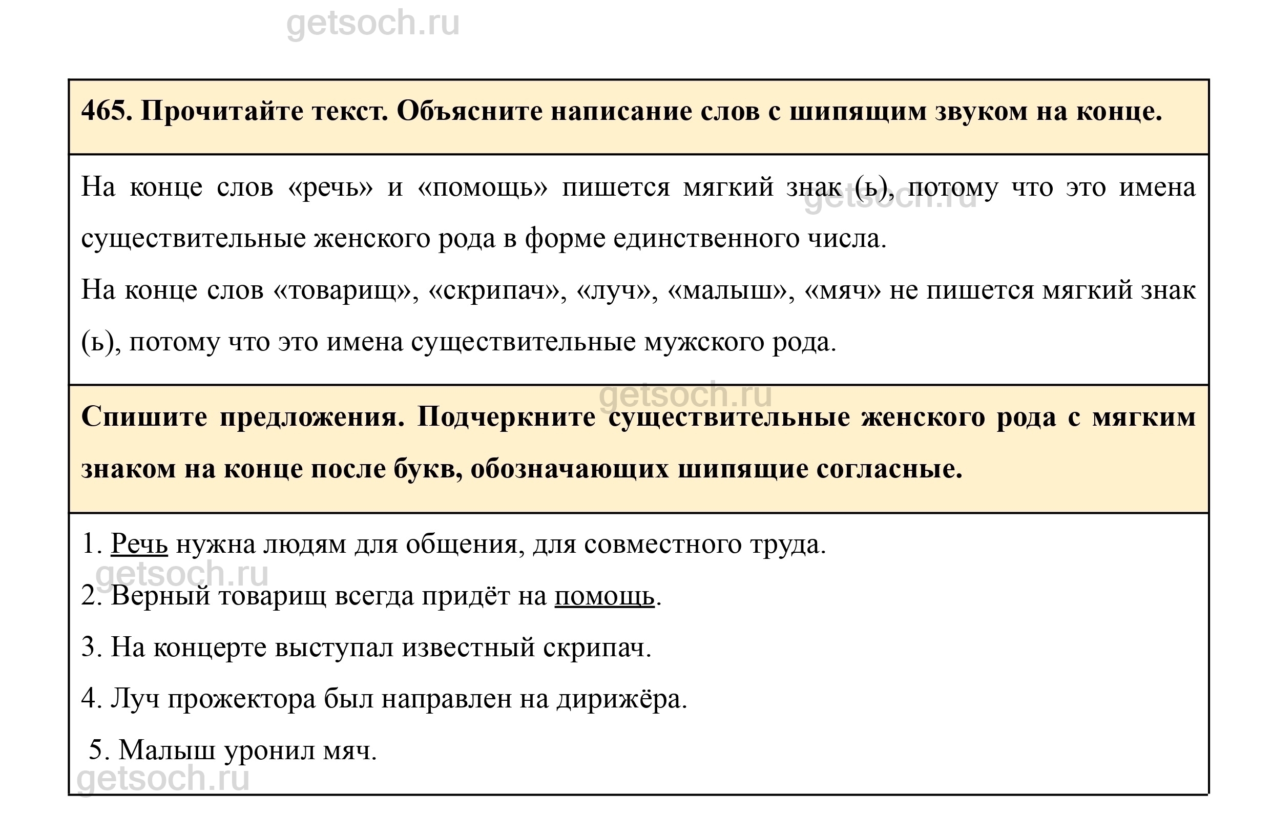 465. Прочитайте текст. Объясните написание слов с шипящим звуком на конце.