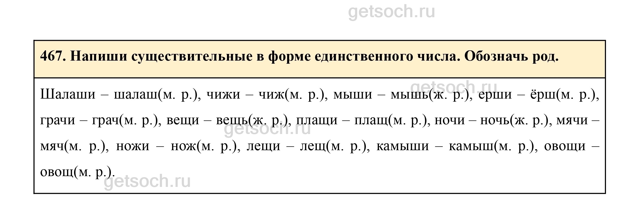 467. Напиши существительные в форме единственного числа. Обозначь род.