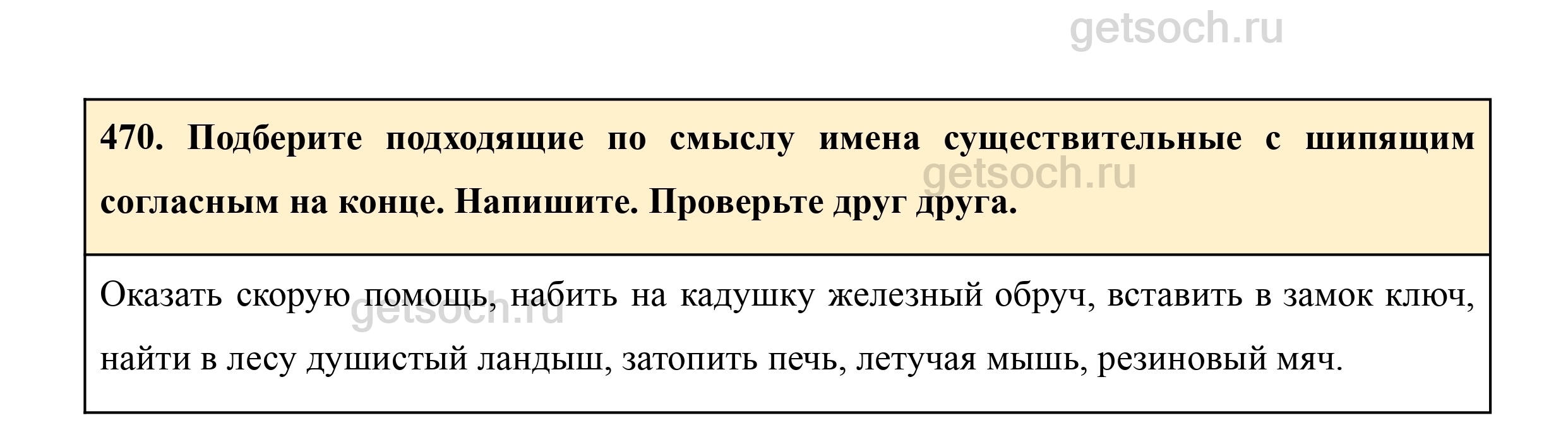 470. Подберите подходящие по смыслу имена существительные с шипящим согласным на конце. Напишите. Проверьте друг друга.